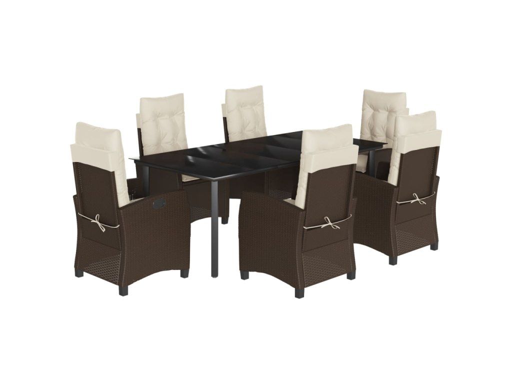 7dílný zahradní jídelní set s poduškami hnědý polyratan 3212779