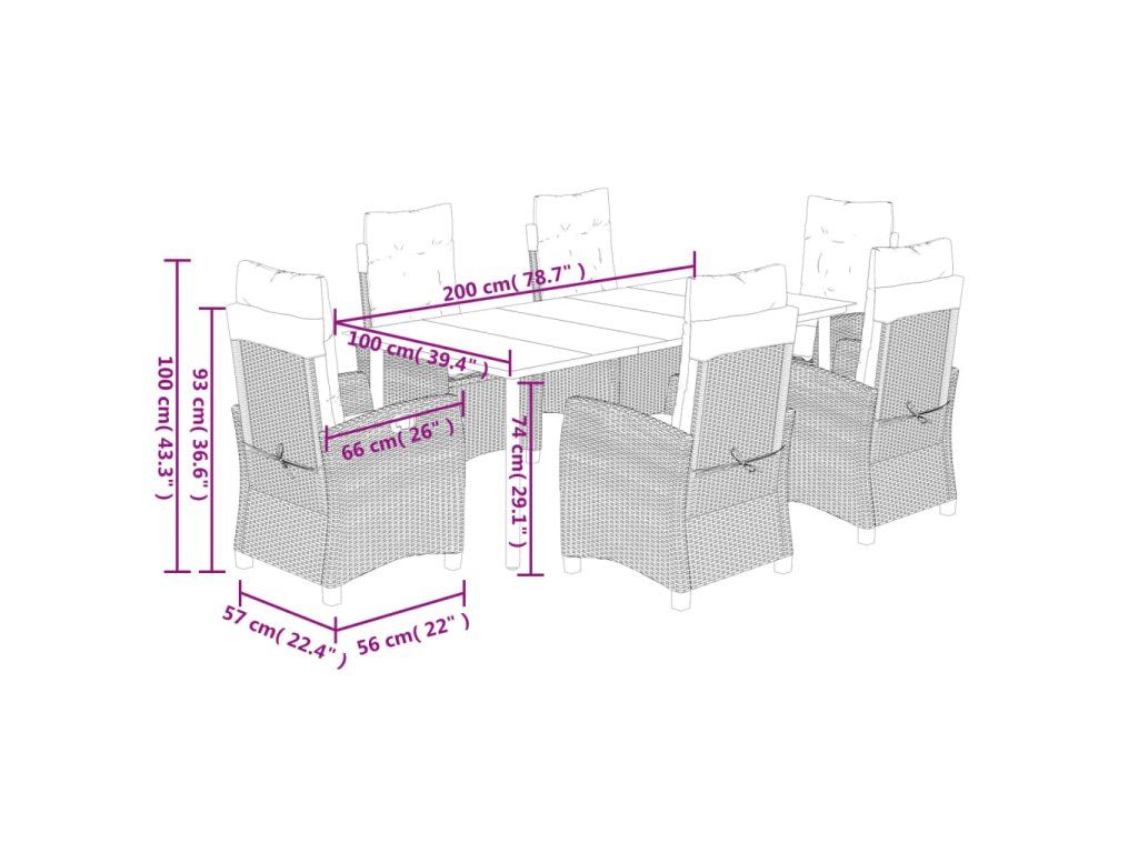 - Rozměry: 200 x 100 x 74 cm (D x Š x V)