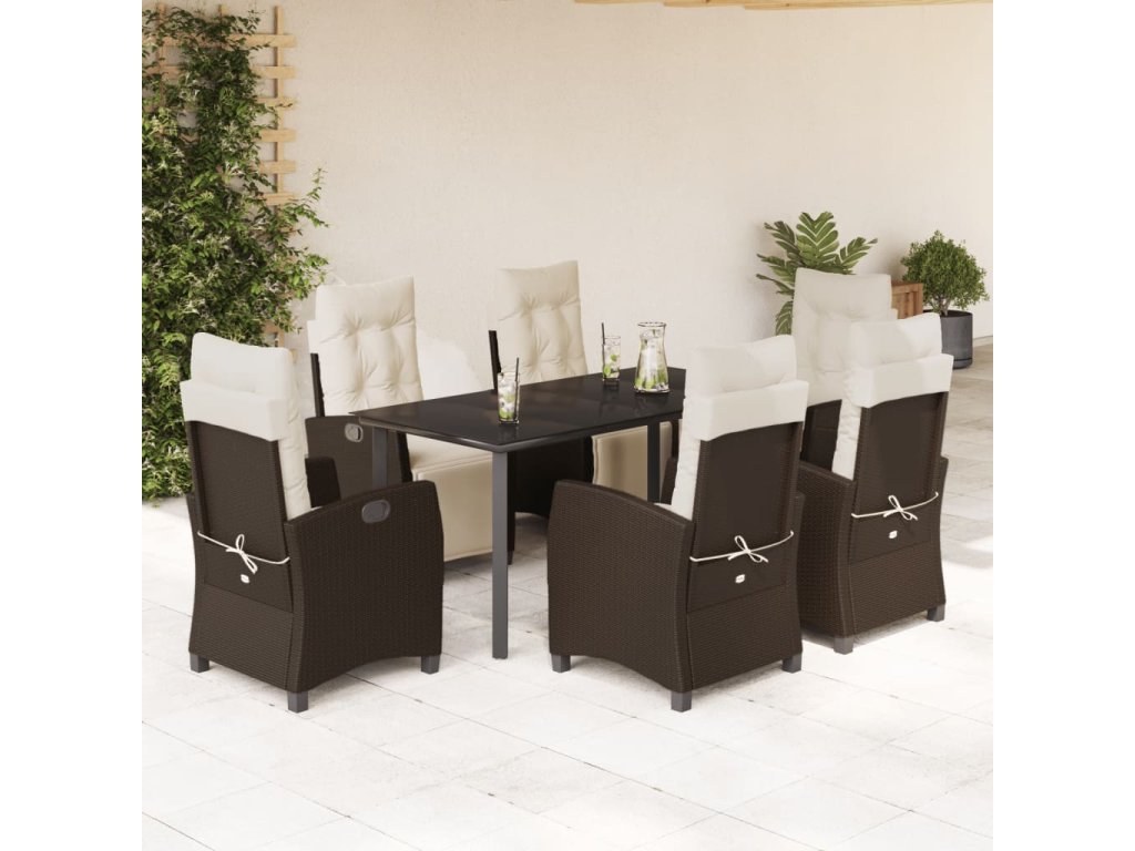 7dílný zahradní jídelní set s poduškami hnědý polyratan 3212985