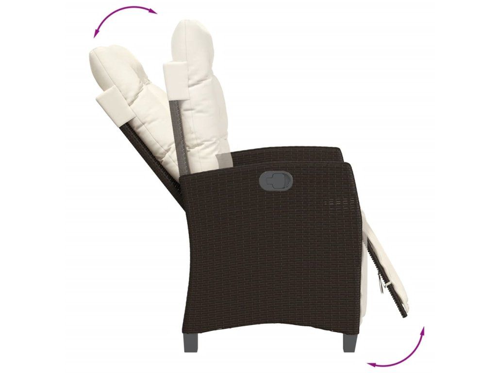 - Nastavitelné opěradlo a opěrka nohou: Tato zahradní židle je opatřena rukojetí. Zatáhnutím za ni můžete opěradlo a opěrku nohou nastavit do libovolné polohy. Stejně tak je můžete rychle vrátit do původní pozice.