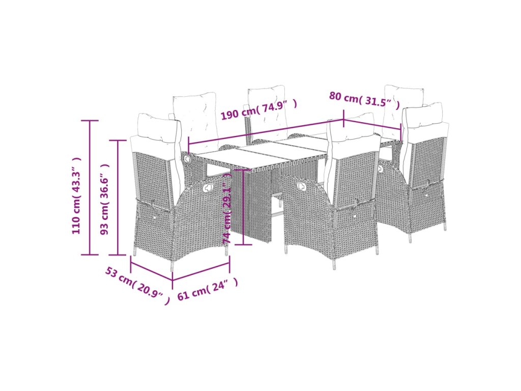 7dílný zahradní jídelní set s poduškami hnědý polyratan 3213118