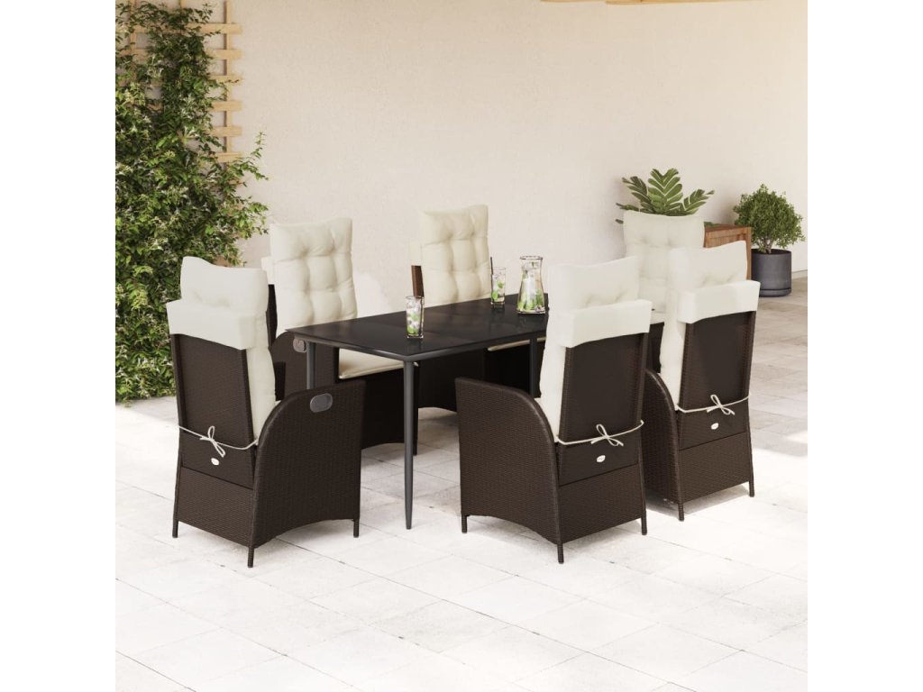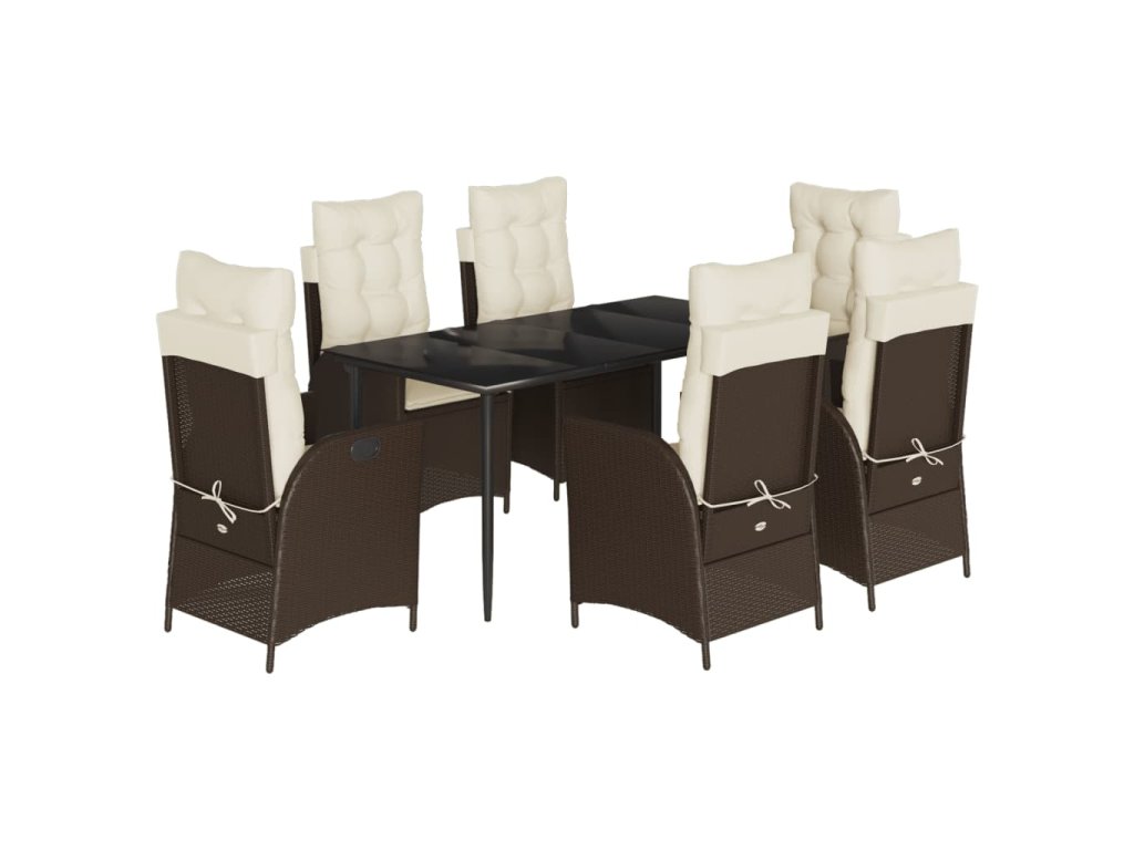 7dílný zahradní jídelní set s poduškami hnědý polyratan 3213199