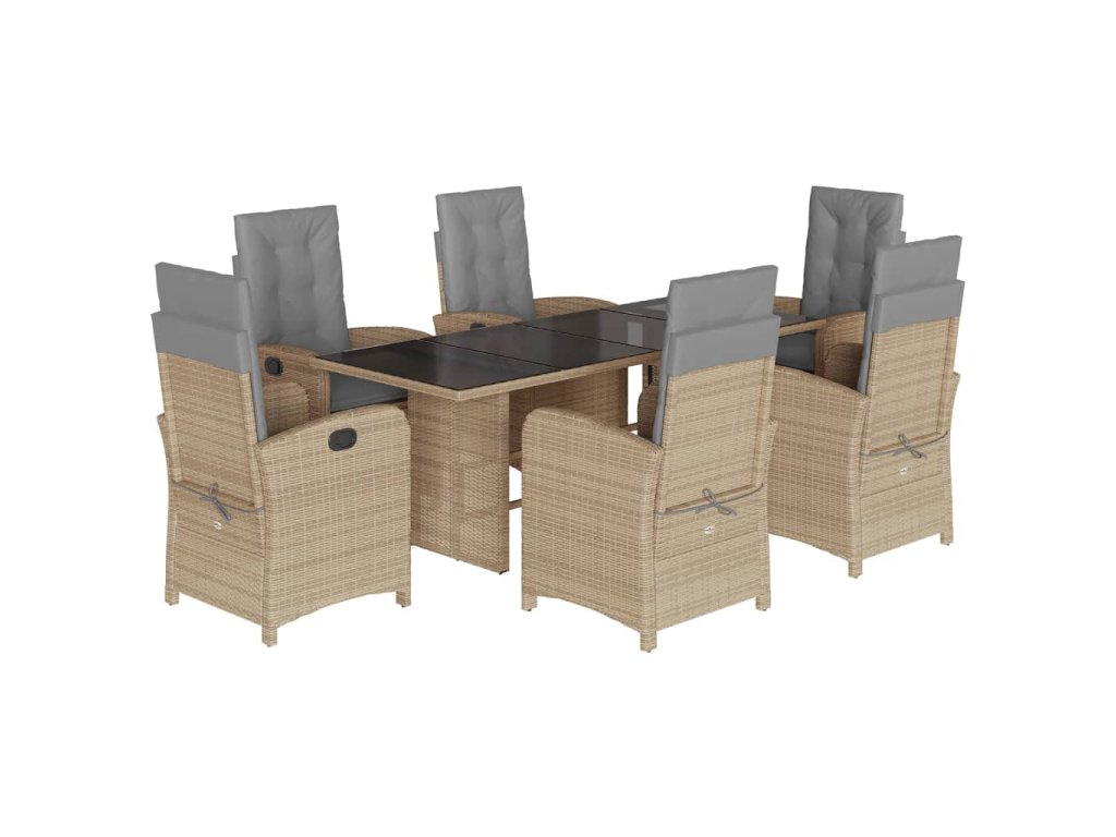 7dílný zahradní jídelní set s poduškami mix béžové polyratan 3212263