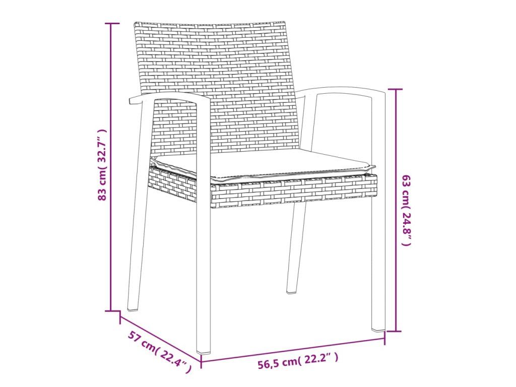 - Rozměry (každý kus): 56,5 x 57 x 83 cm (Š x H x V)