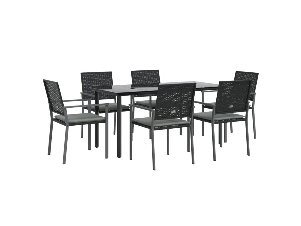 7dílný zahradní jídelní set s poduškami polyratan a ocel 3187026