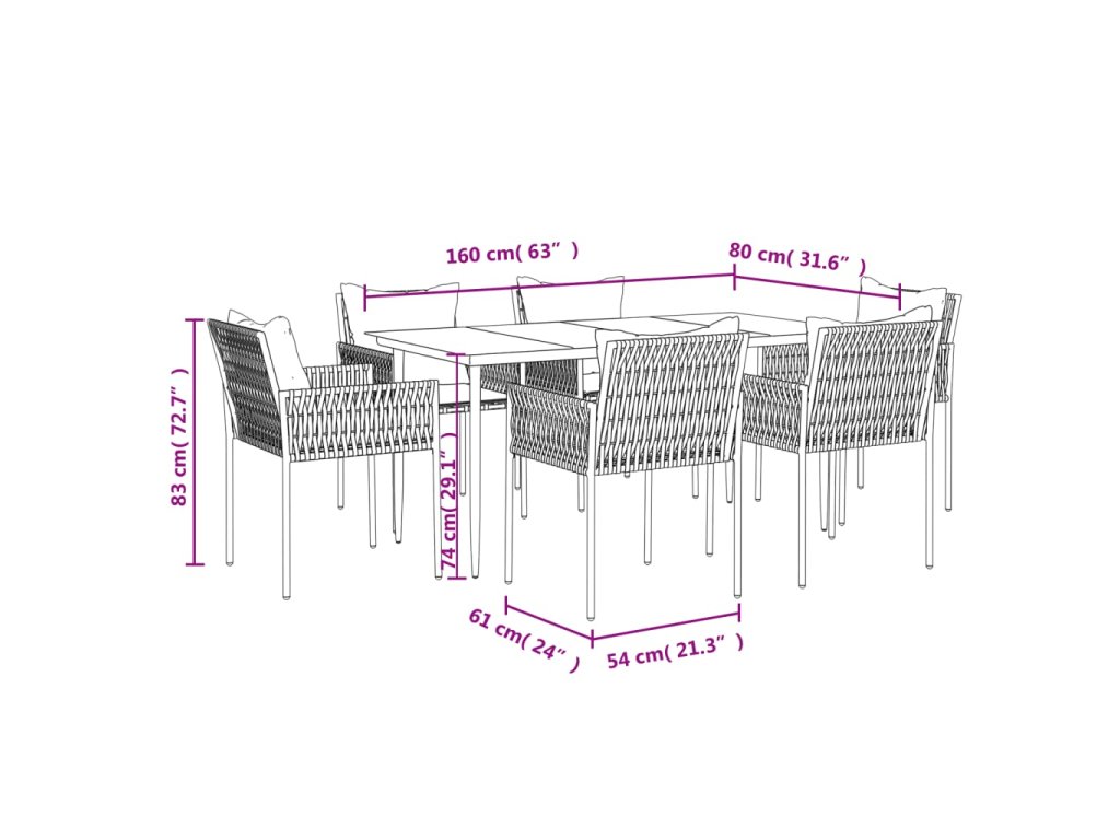7dílný zahradní jídelní set s poduškami polyratan a ocel 3187060