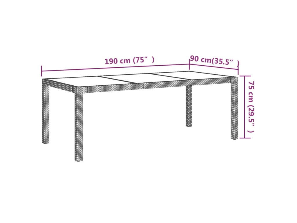 Tento zahradní jídelní set má ocelový rám s práškovým nástřikem, který stolu a židlím dodává na stabilitě a odolnosti. Set venkovního nábytku je zhotoven z PE ratanu odolnému vůči povětrnostním vlivům a vodě, takže se snadno čistí. Silné odnímatelné sedáky zvyšují pohodlí při sezení a snadno se perou.