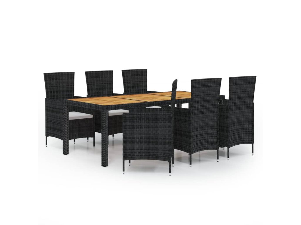 7dílný zahradní jídelní set s poduškami polyratan černý 3094837