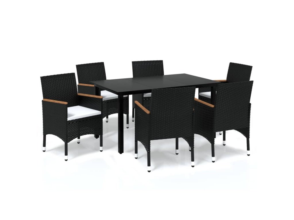 7dílný zahradní jídelní set s poduškami polyratan černý 3095000
