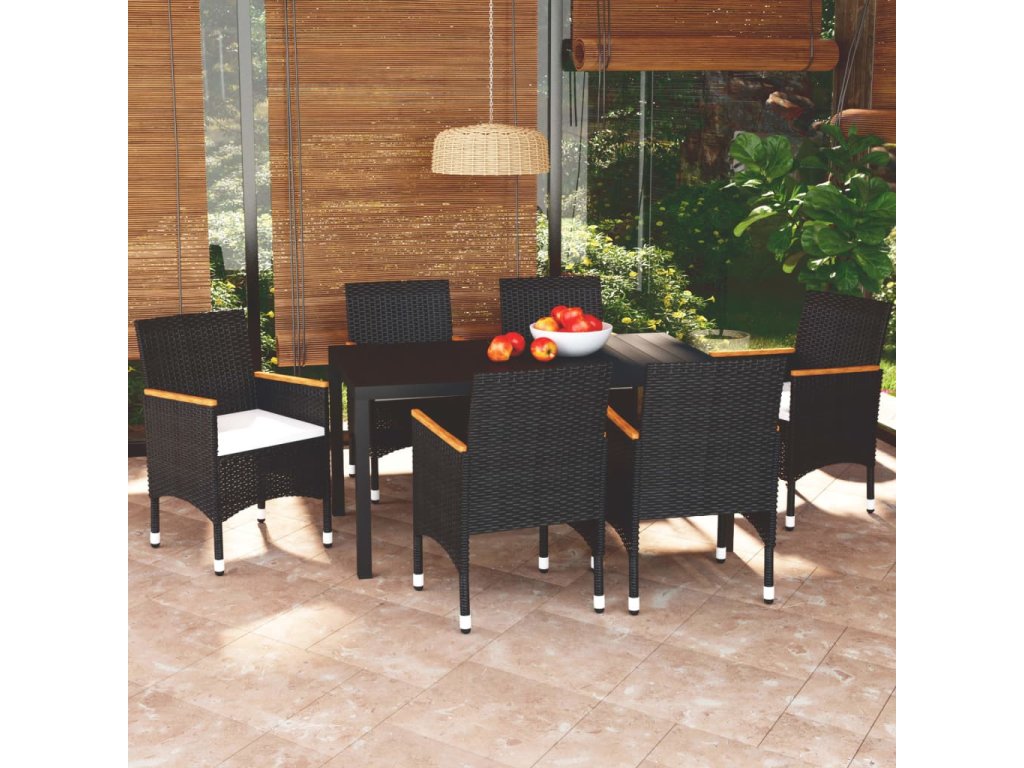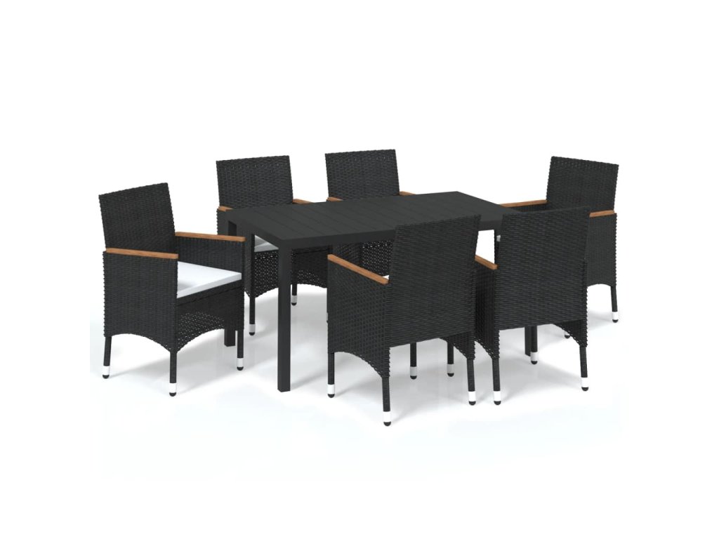 7dílný zahradní jídelní set s poduškami polyratan černý 3095018
