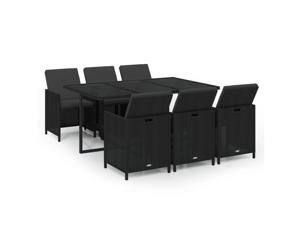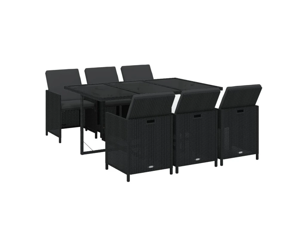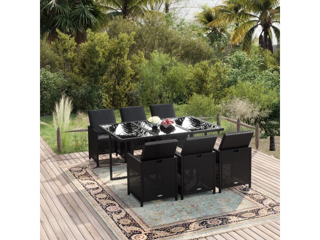 7dílný zahradní jídelní set s poduškami polyratan černý 3095531