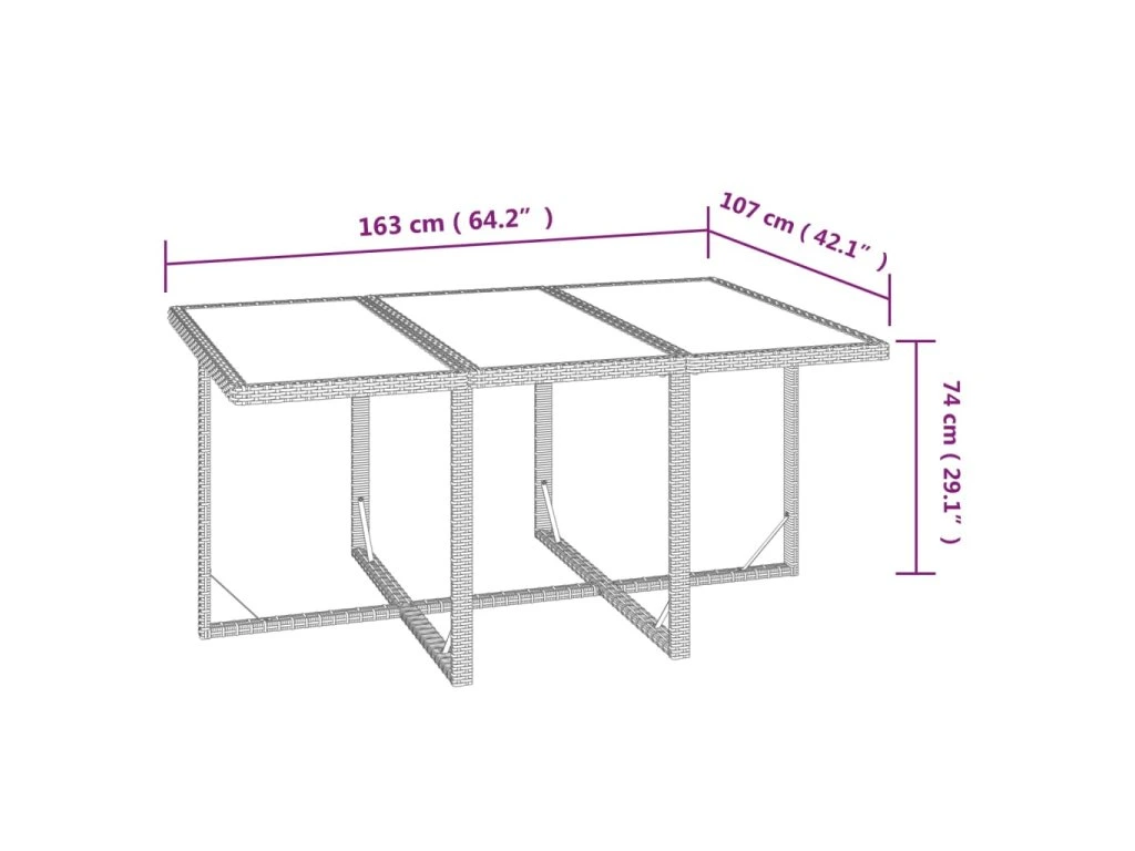 - Celkové rozměry stolu: 163 x 107 x 74 cm (D x Š x V)