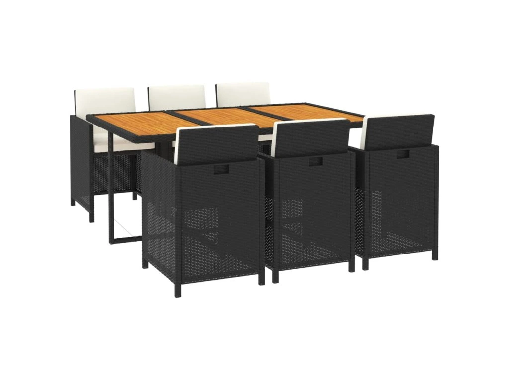7dílný zahradní jídelní set s poduškami polyratan černý 3095545