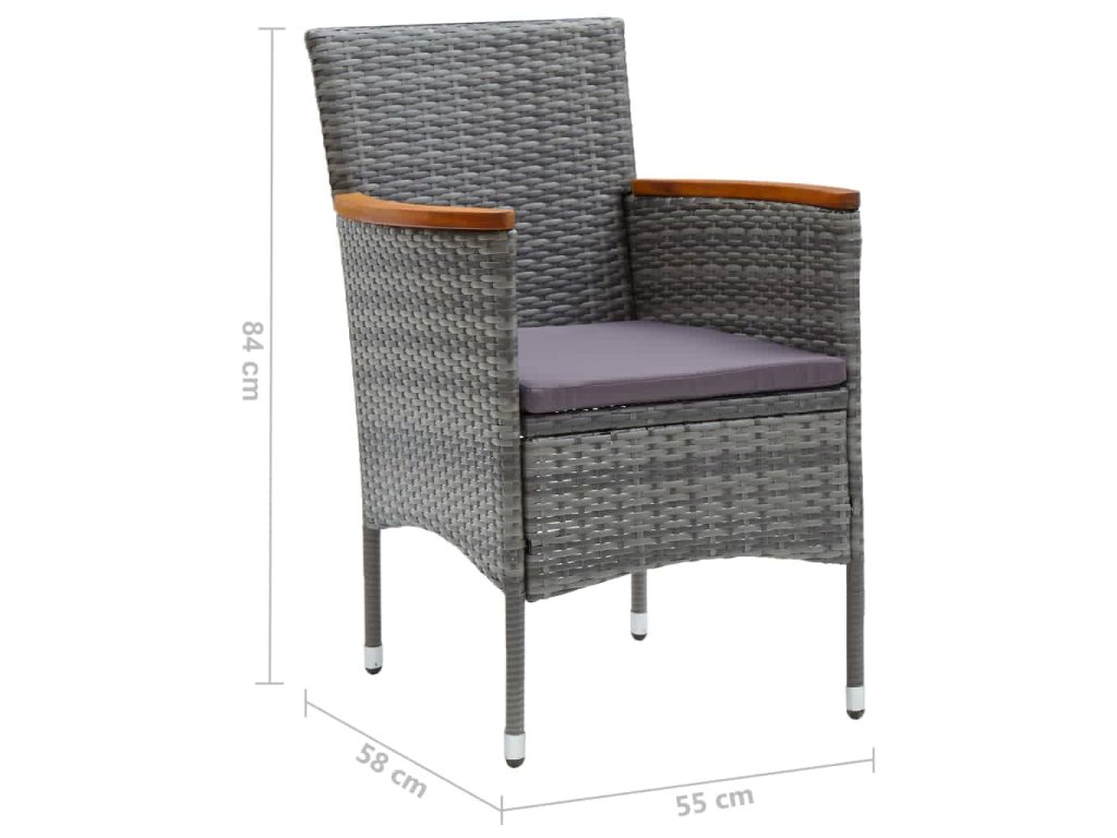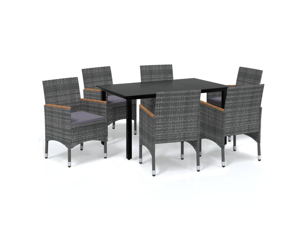 7dílný zahradní jídelní set s poduškami polyratan šedý 3095006