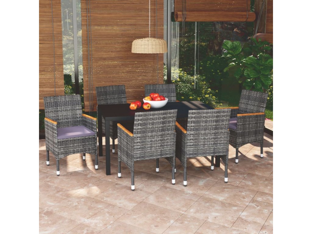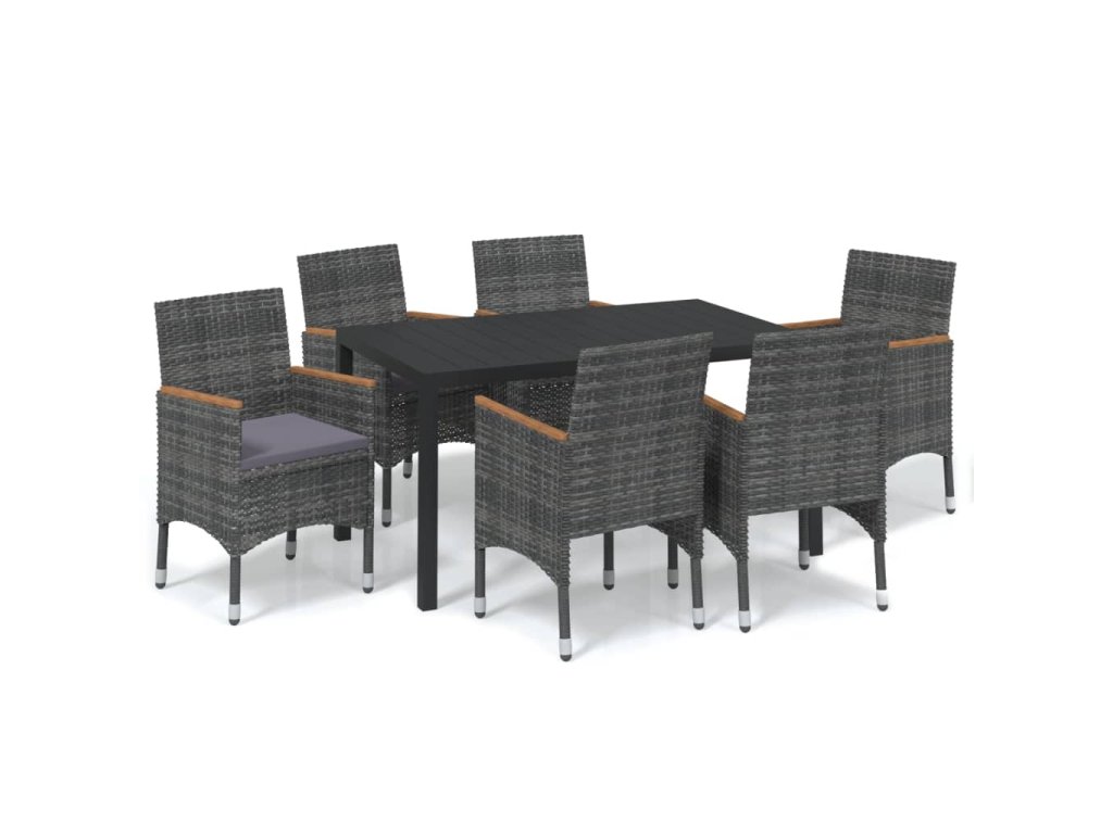7dílný zahradní jídelní set s poduškami polyratan šedý 3095030