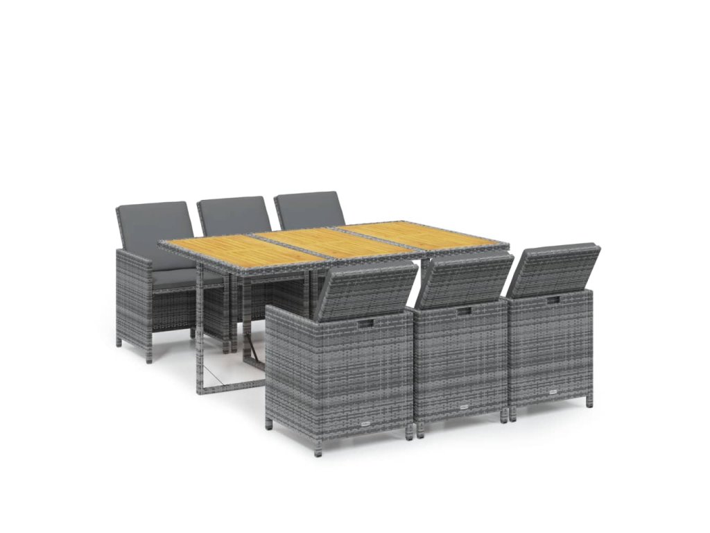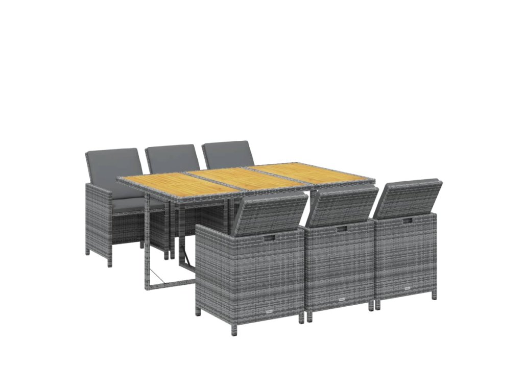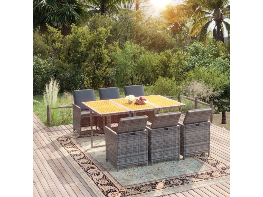 7dílný zahradní jídelní set s poduškami polyratan šedý 3095551
