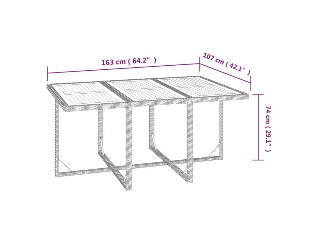 - Celkové rozměry stolu: 163 x 107 x 74 cm (D x Š x V)