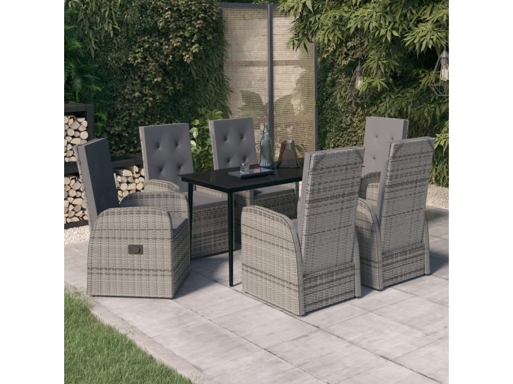 7dílný zahradní jídelní set s poduškami šedý 3099488