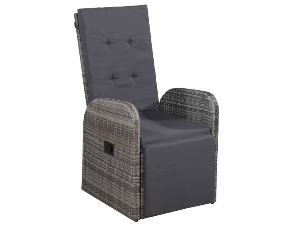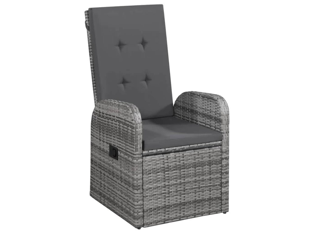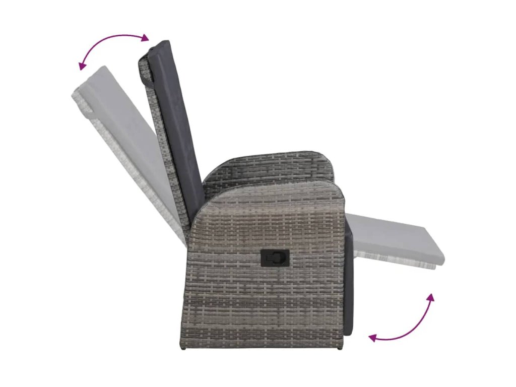 Stůl i židle mají rámy z práškově lakované oceli, jsou tedy robustní, stabilní a vhodné pro každodenní venkovní použití. Židle jsou vyrobené z voděodolného PE ratanu, takže se snadno čistí a hodně toho vydrží. Opěradlo i opěrku nohou si můžete nastavit zatažením za tlačítko na boku. Nábytek má lehkou konstrukci, lze ho tudíž bez námahy přesouvat. Husté polstrované podušky na sedák vám navíc zajistí mimořádné pohodlí. Jejich polyesterové potahy jsou nenáročné na údržbu a dají se stáhnout a vyprat. Hladká skleněná stolní deska, kterou jednoduše očistíte vlhkým hadříkem, je ideální k podávání jídla a pití nebo k vystavení různých dekorativních předmětů.