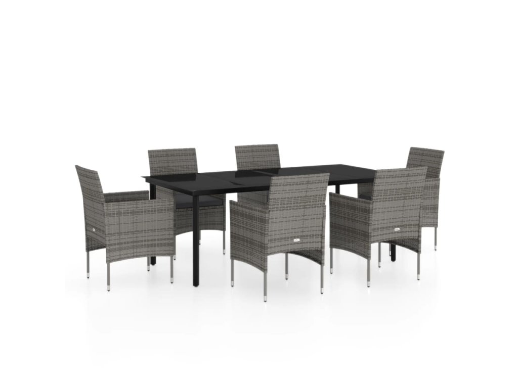 7dílný zahradní jídelní set s poduškami šedý a černý 3099291