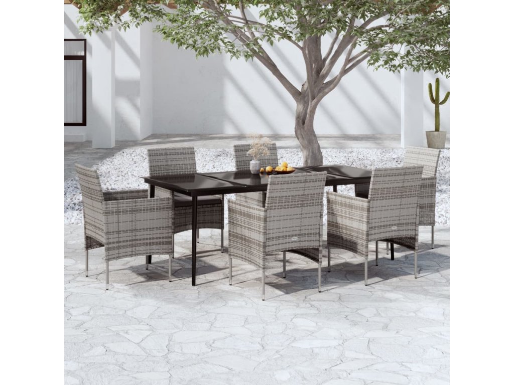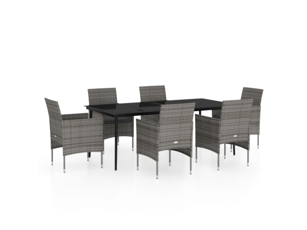 7dílný zahradní jídelní set s poduškami šedý a černý 3099315