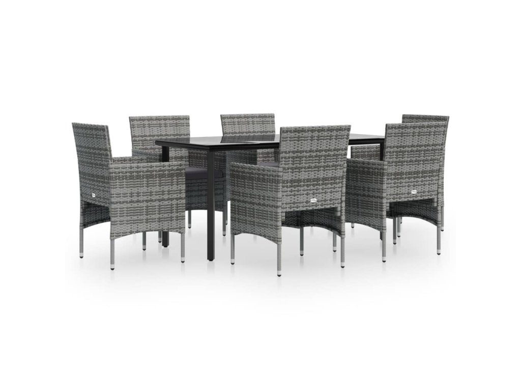 7dílný zahradní jídelní set s poduškami šedý a černý 3156605