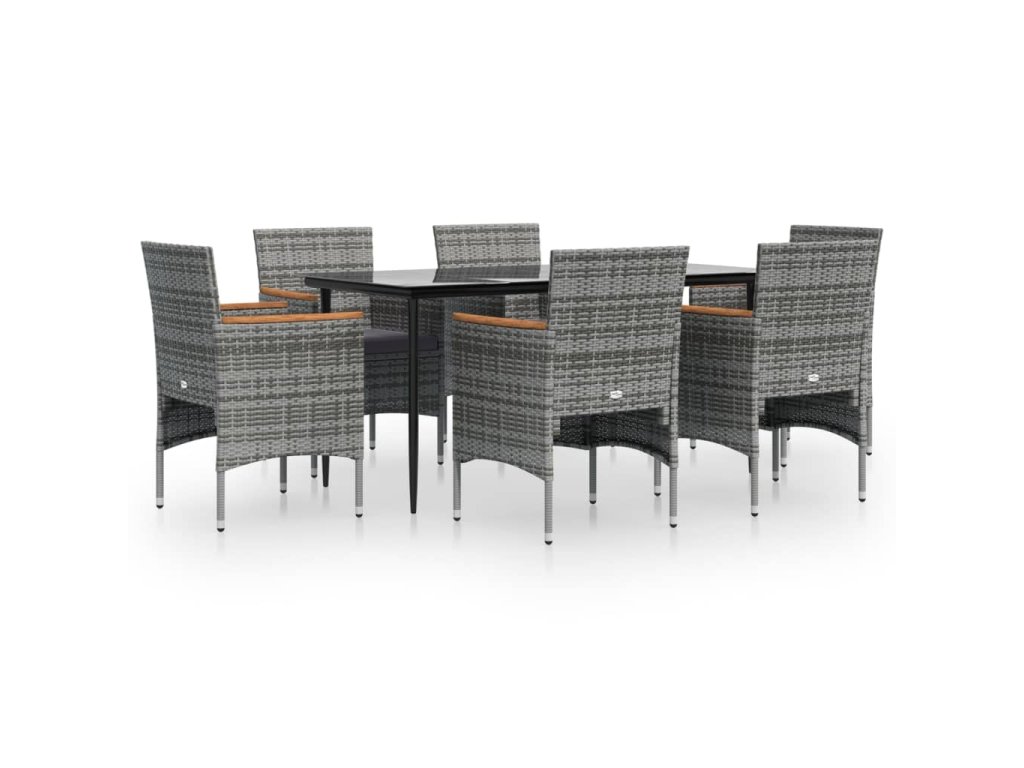 7dílný zahradní jídelní set s poduškami šedý a černý 3156645
