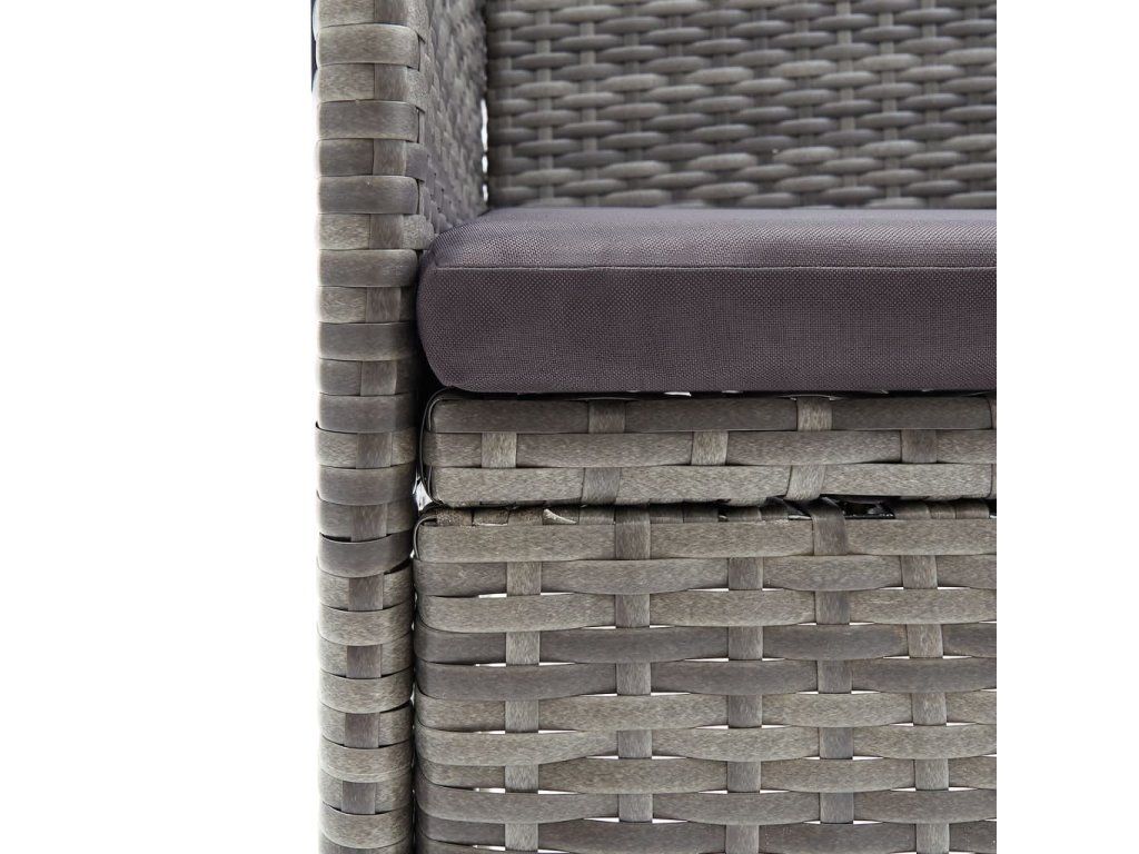 - Materiál: polyratan, práškově lakovaná ocel, textil (100% polyester), masivní akáciové dřevo s přírodní olejovou povrchovou úpravou