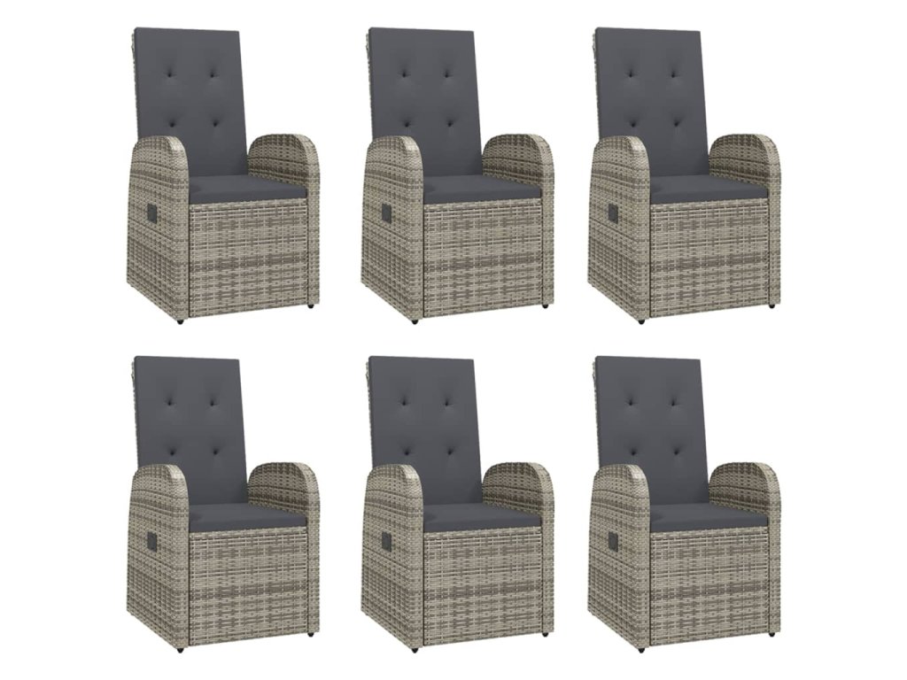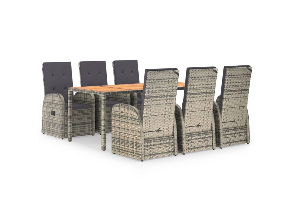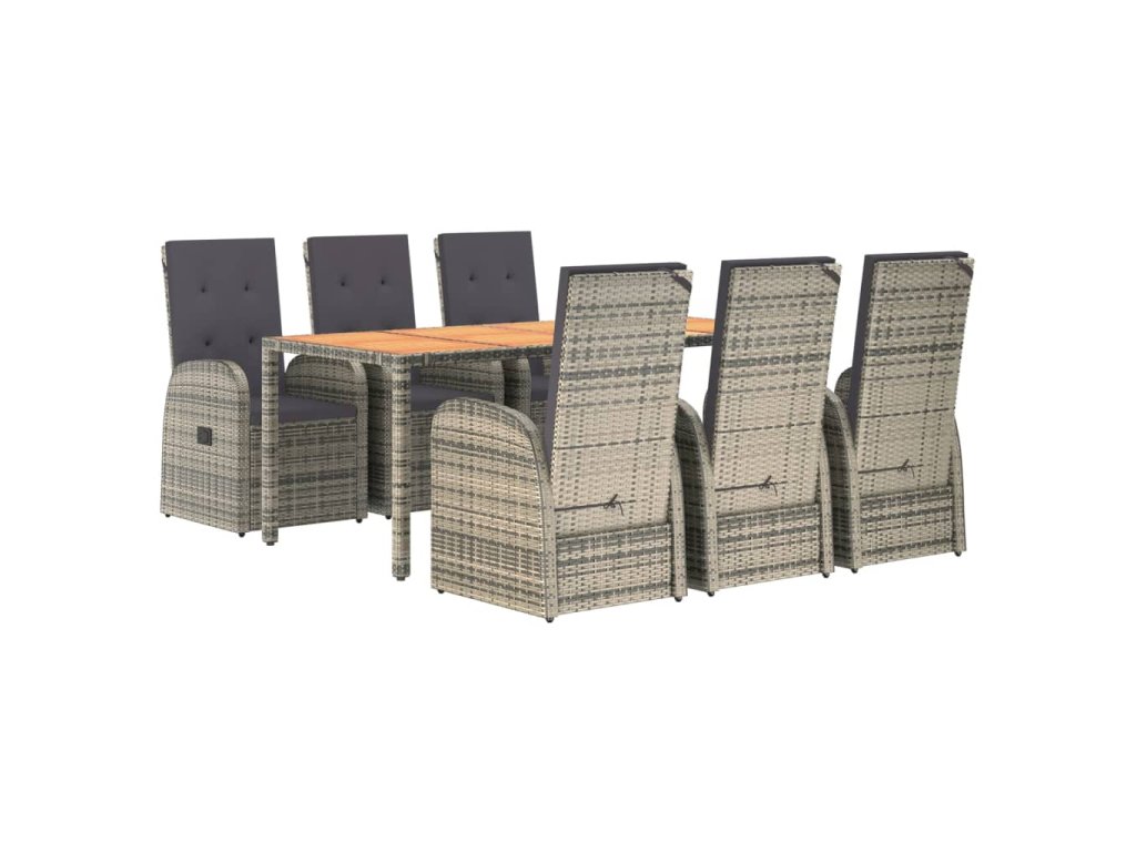 7dílný zahradní jídelní set s poduškami šedý polyratan 3157588