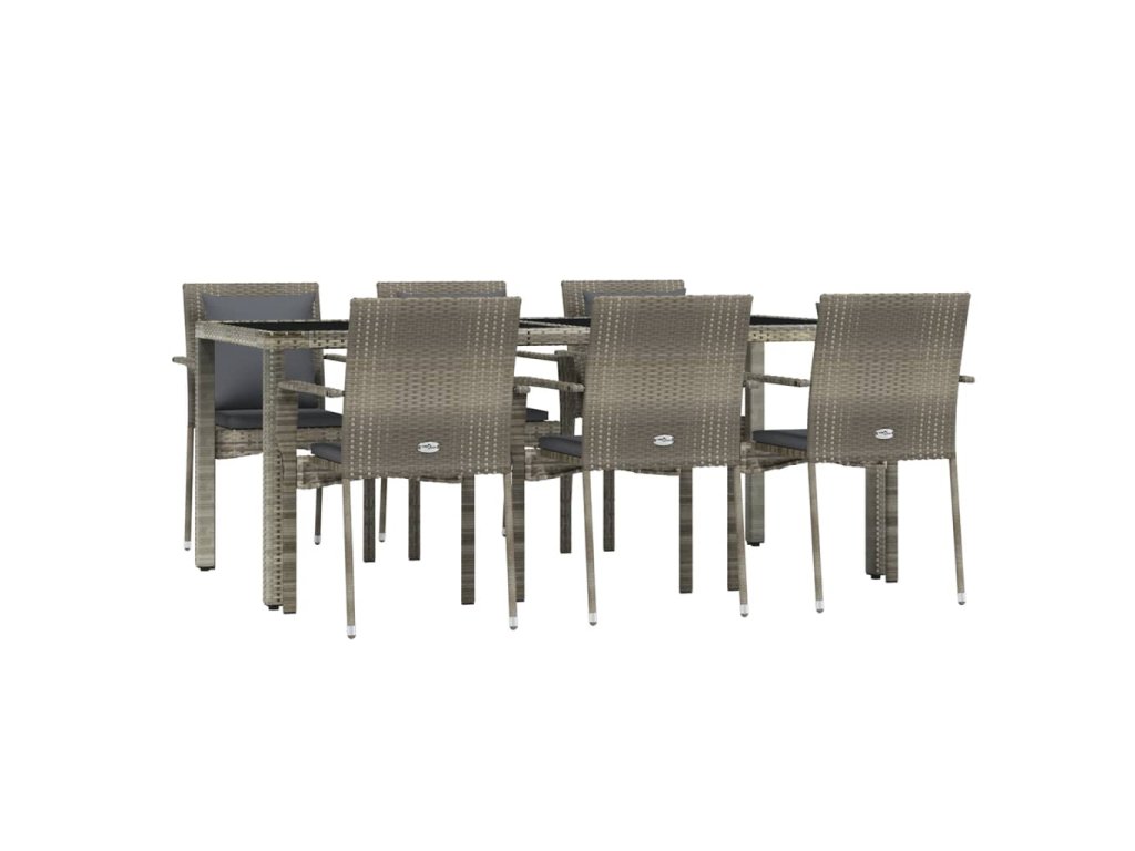 7dílný zahradní jídelní set s poduškami šedý polyratan 3157961