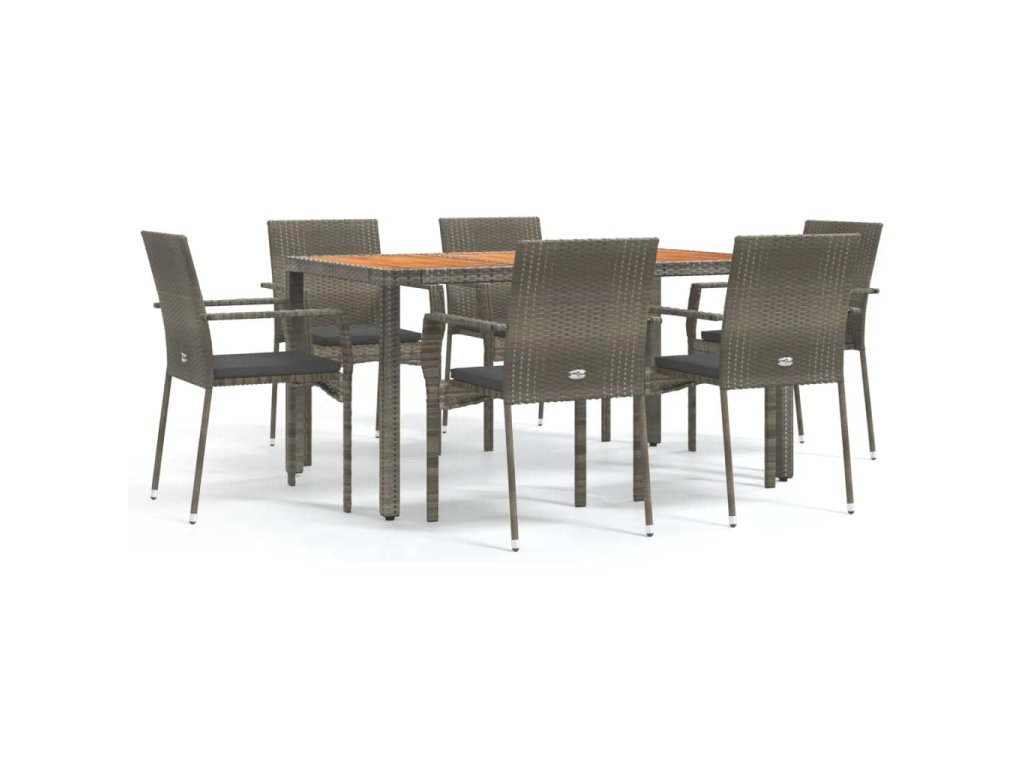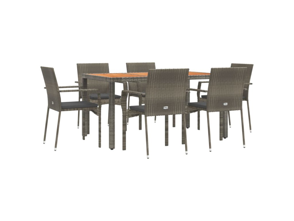 7dílný zahradní jídelní set s poduškami šedý polyratan 3184996