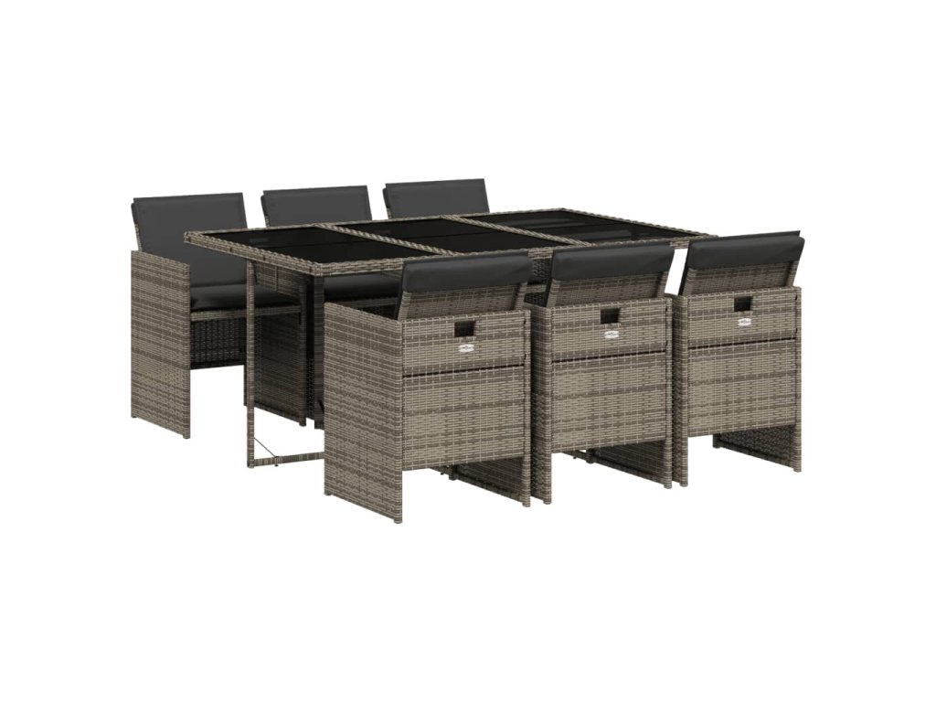 7dílný zahradní jídelní set s poduškami šedý polyratan 3210548