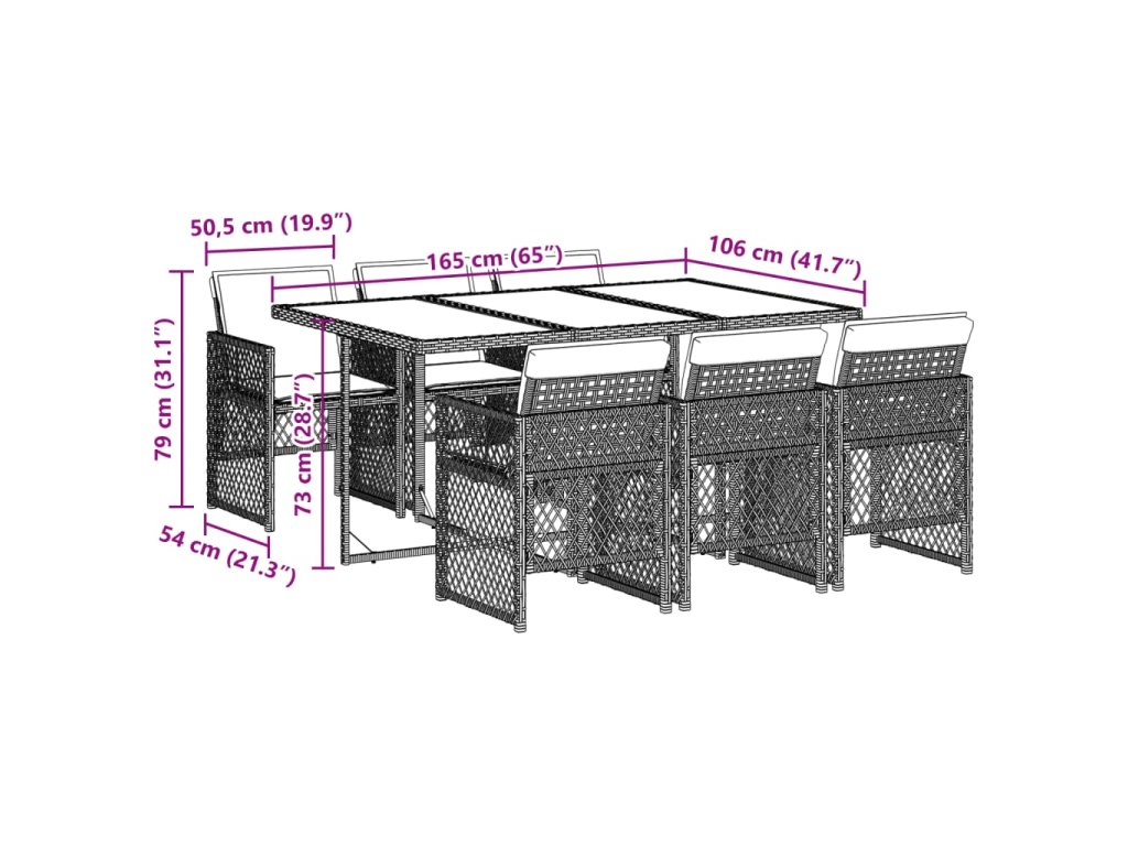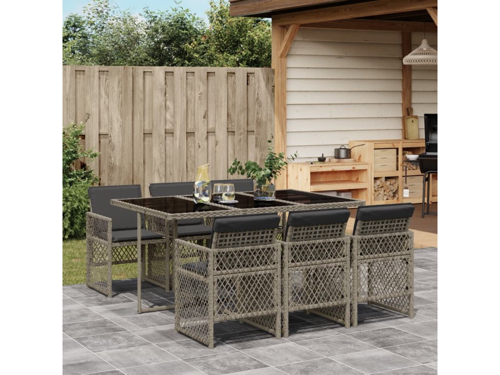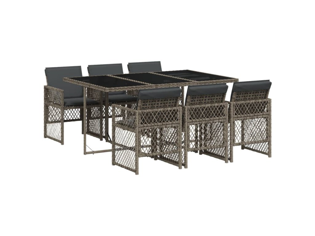 7dílný zahradní jídelní set s poduškami šedý polyratan 3210728