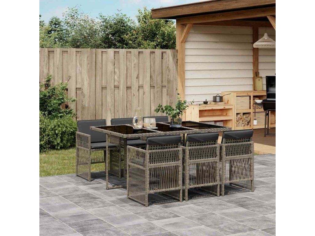 7dílný zahradní jídelní set s poduškami šedý polyratan 3210908