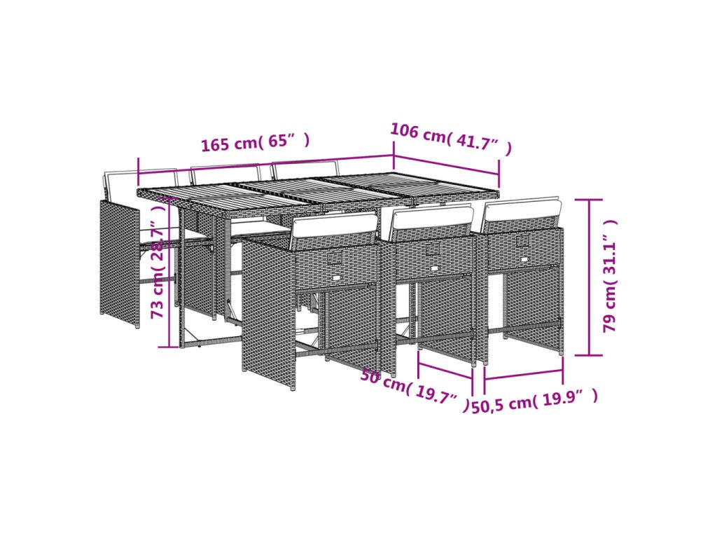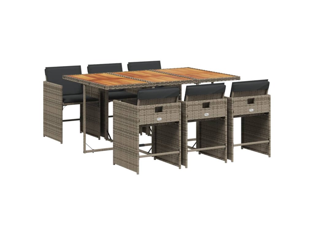 7dílný zahradní jídelní set s poduškami šedý polyratan 3211094