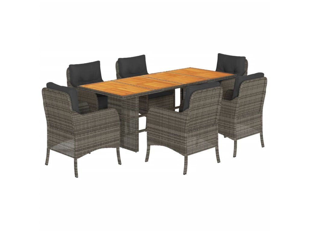 7dílný zahradní jídelní set s poduškami šedý polyratan 3211898