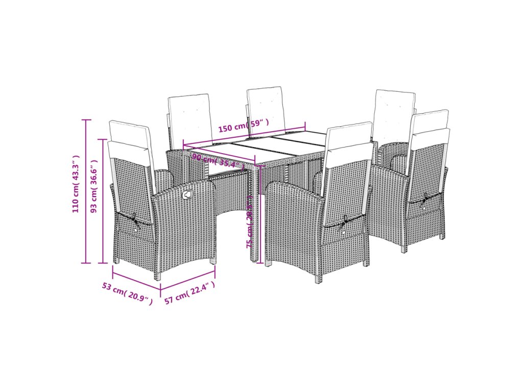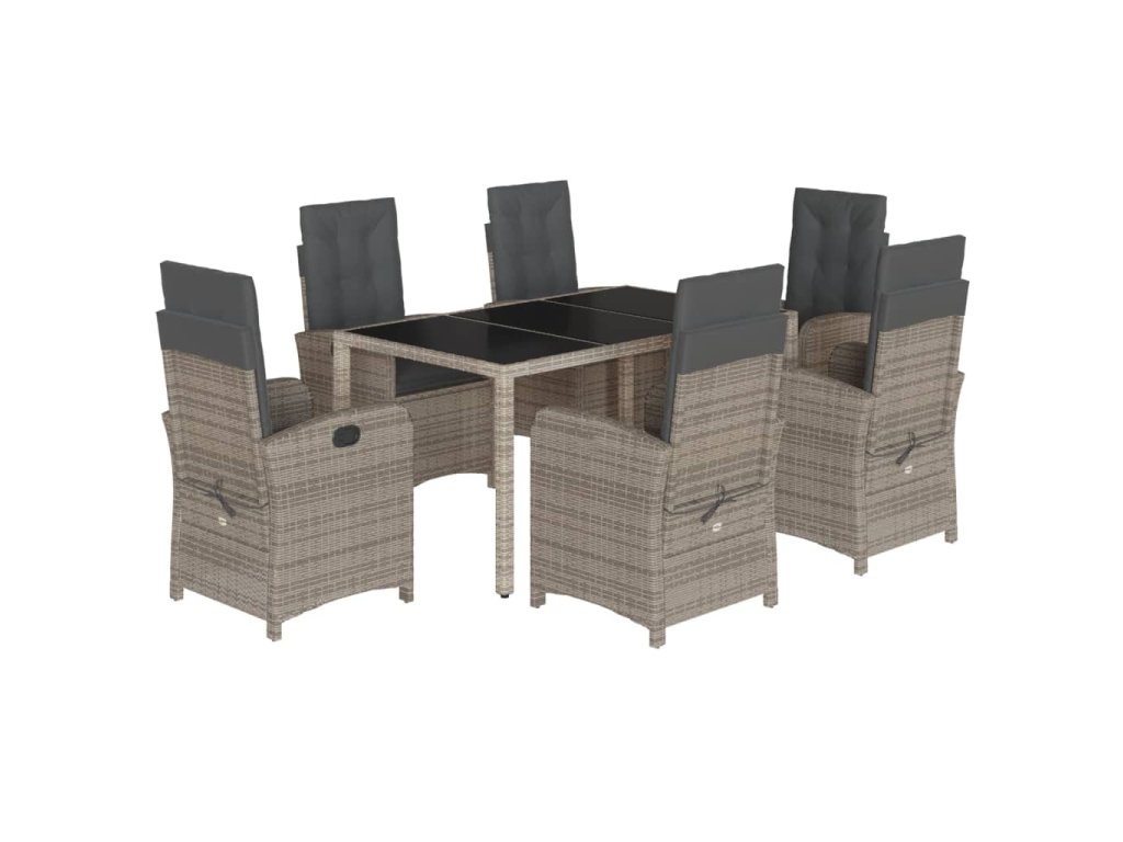 7dílný zahradní jídelní set s poduškami šedý polyratan 3212216