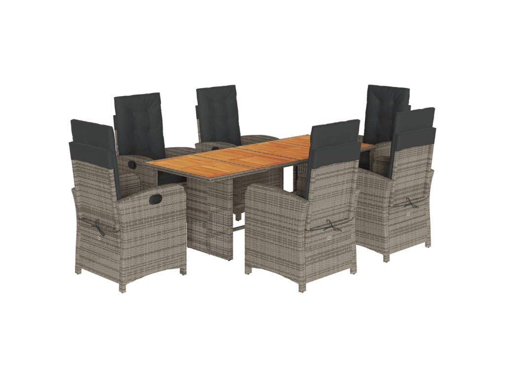 7dílný zahradní jídelní set s poduškami šedý polyratan 3212278