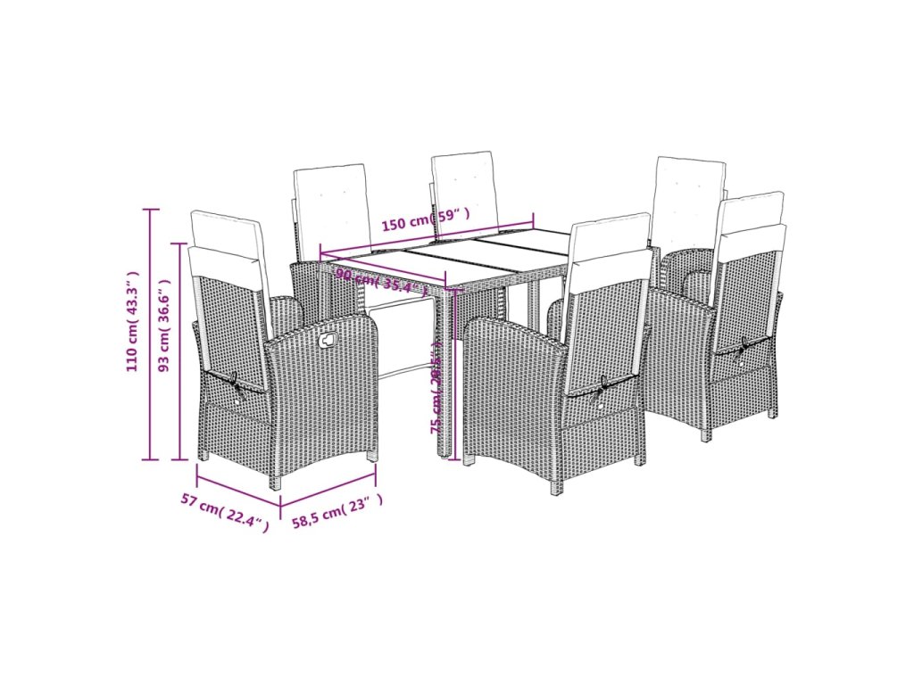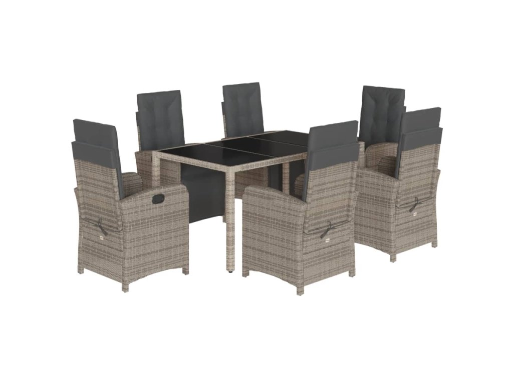 7dílný zahradní jídelní set s poduškami šedý polyratan 3212465