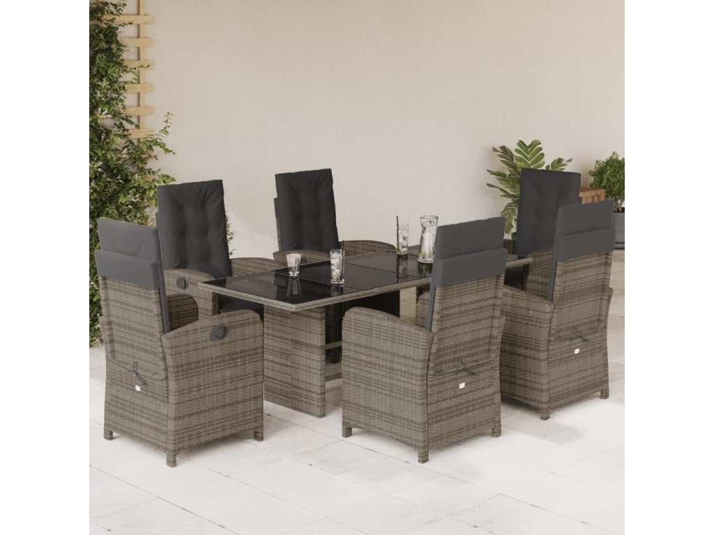 7dílný zahradní jídelní set s poduškami šedý polyratan 3212492