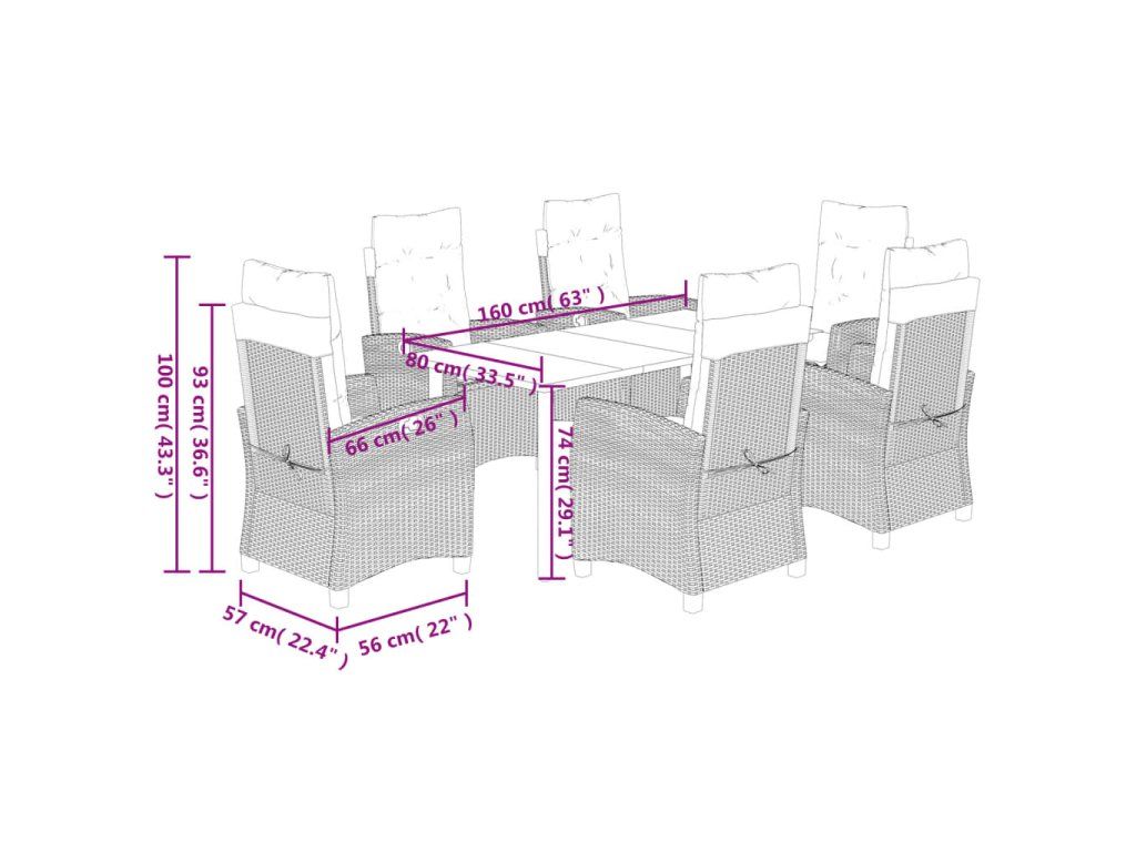 7dílný zahradní jídelní set s poduškami šedý polyratan 3212797