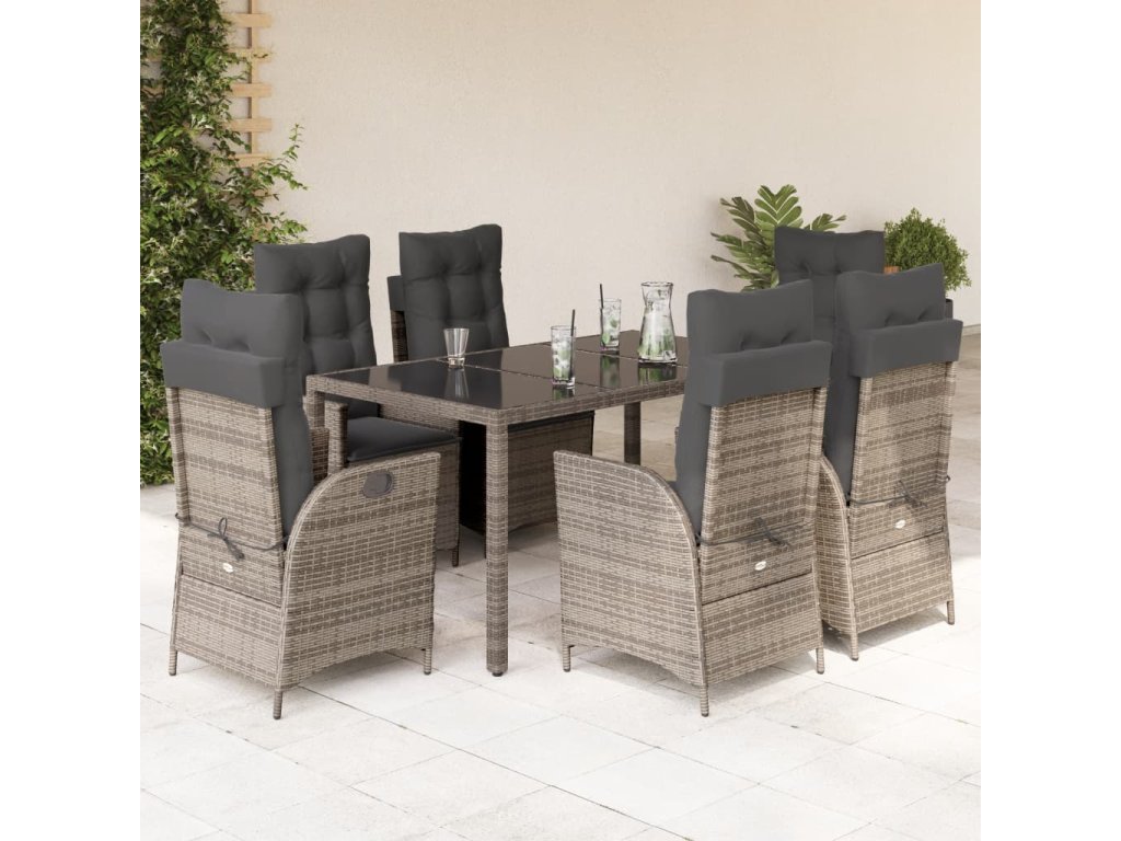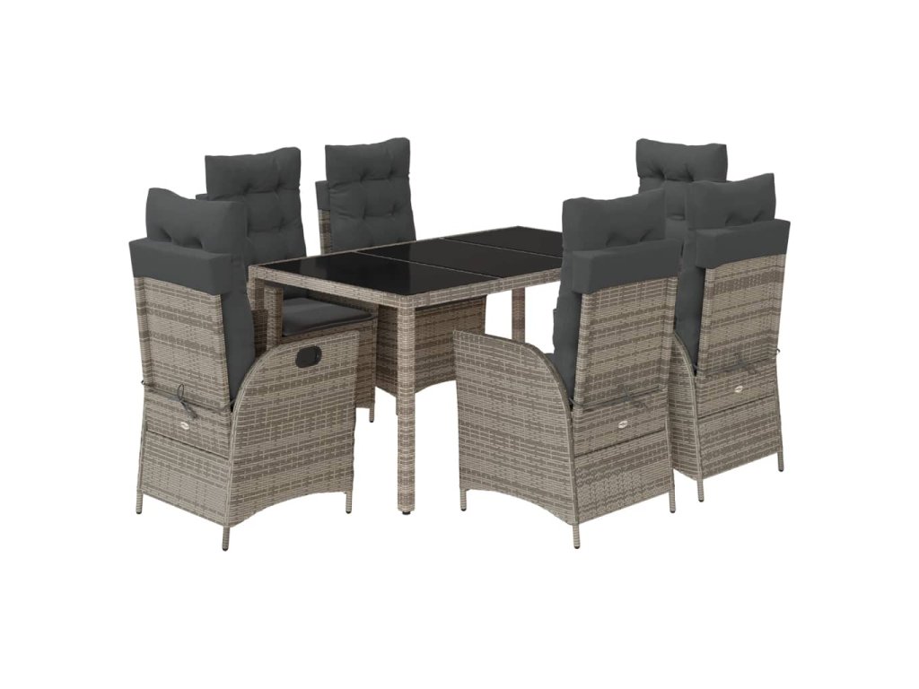 7dílný zahradní jídelní set s poduškami šedý polyratan 3213080