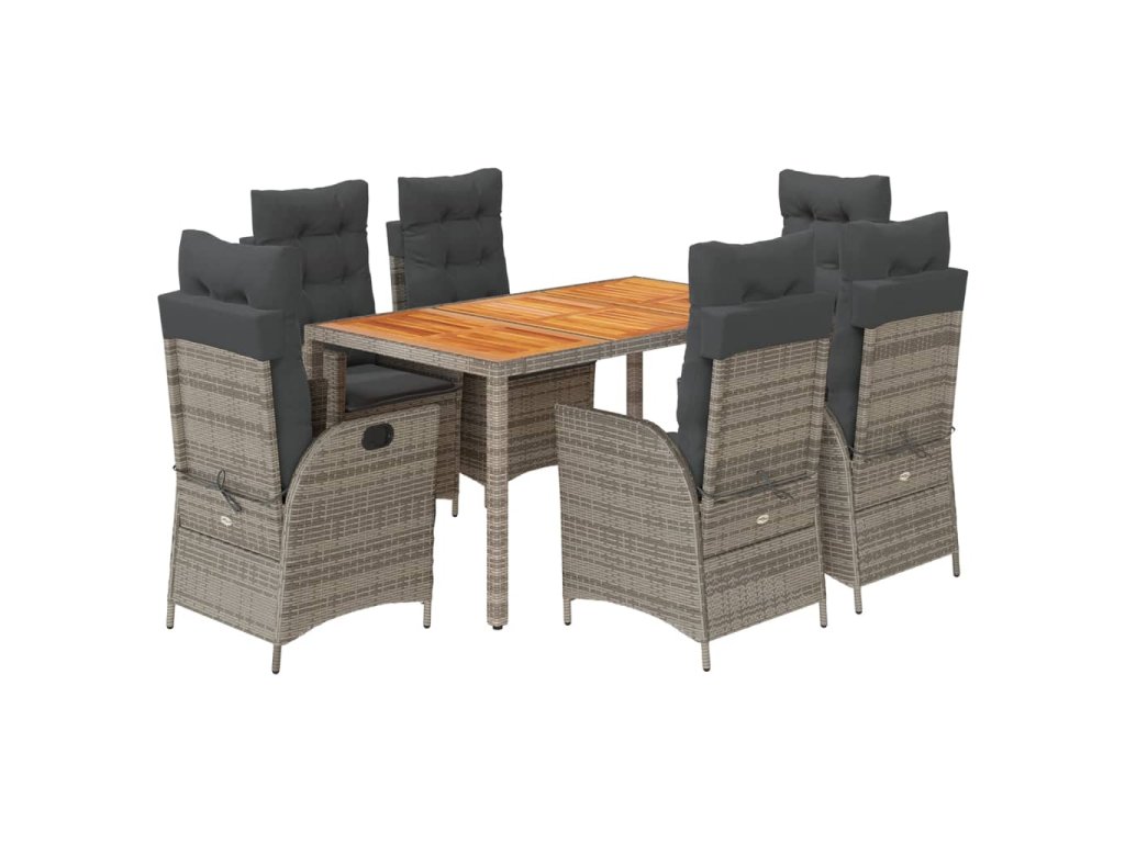 7dílný zahradní jídelní set s poduškami šedý polyratan 3213107