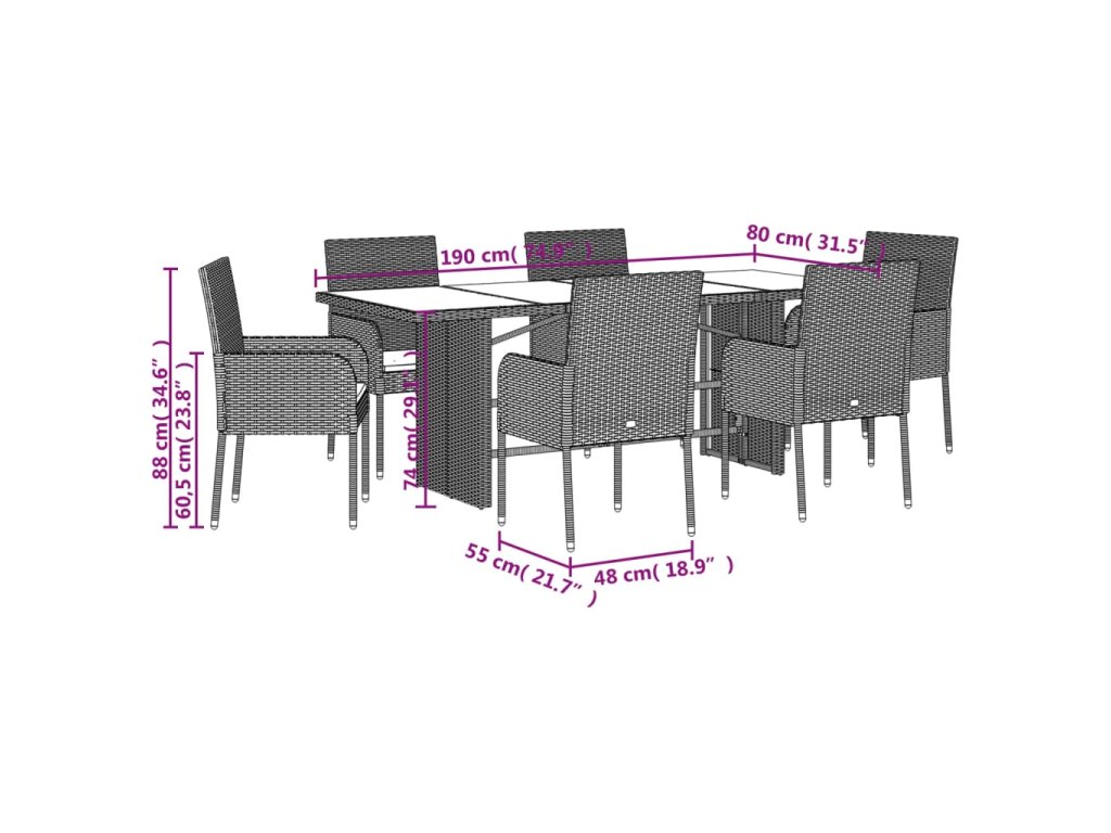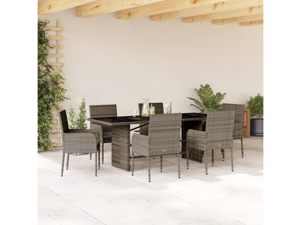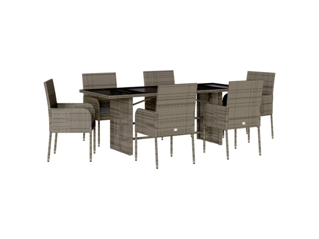 7dílný zahradní jídelní set s poduškami šedý polyratan 3213508