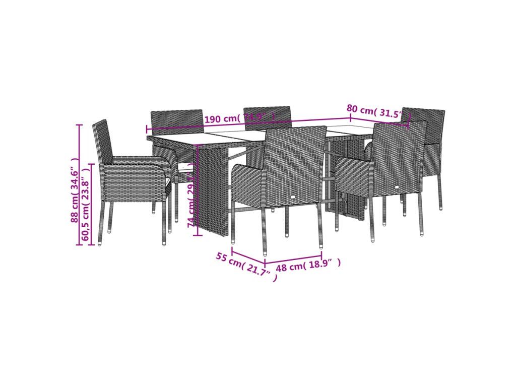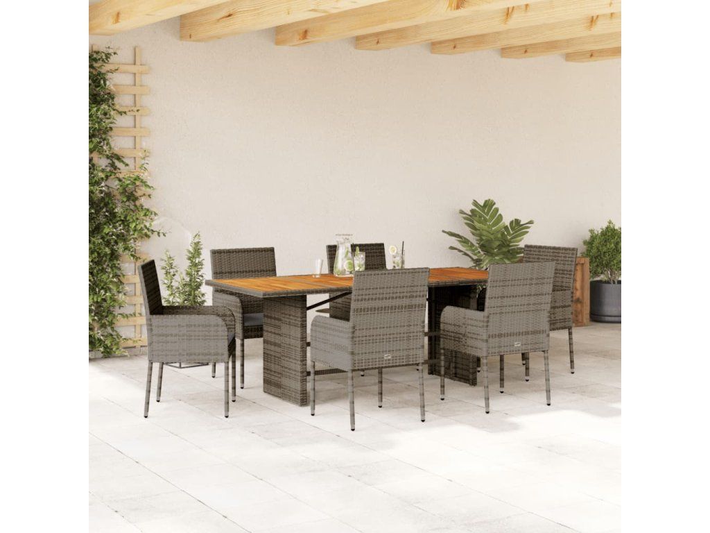 7dílný zahradní jídelní set s poduškami šedý polyratan 3213512