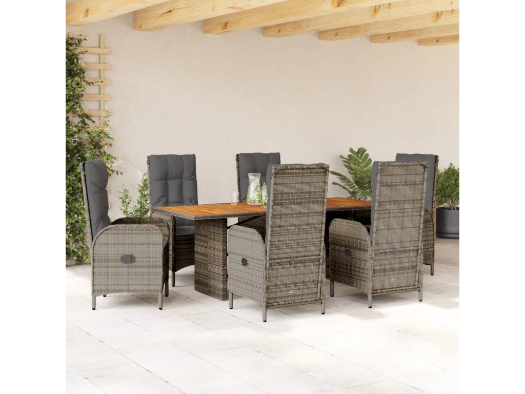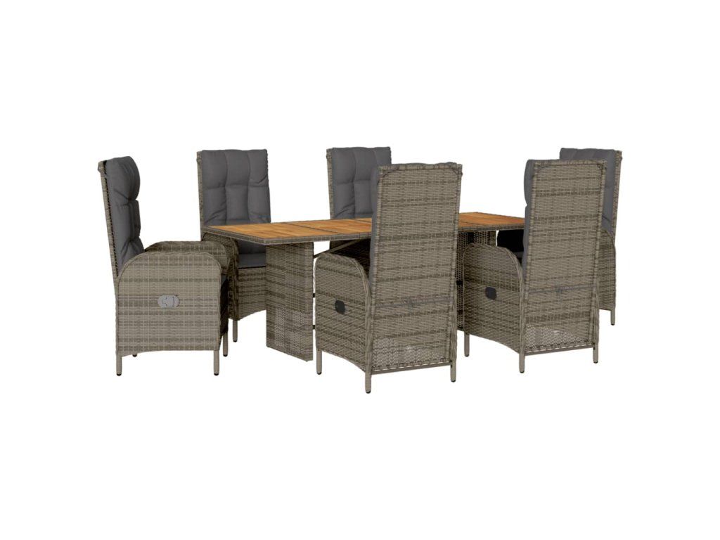 7dílný zahradní jídelní set s poduškami šedý polyratan 3213517