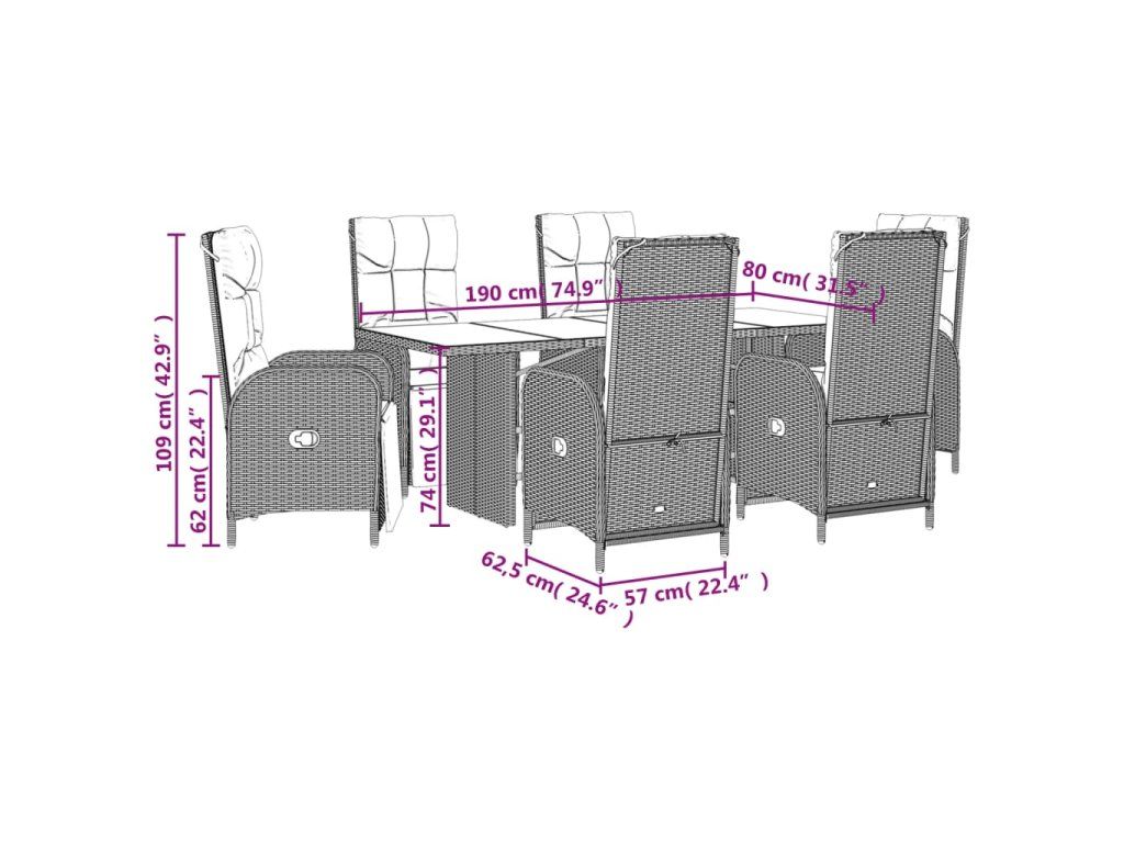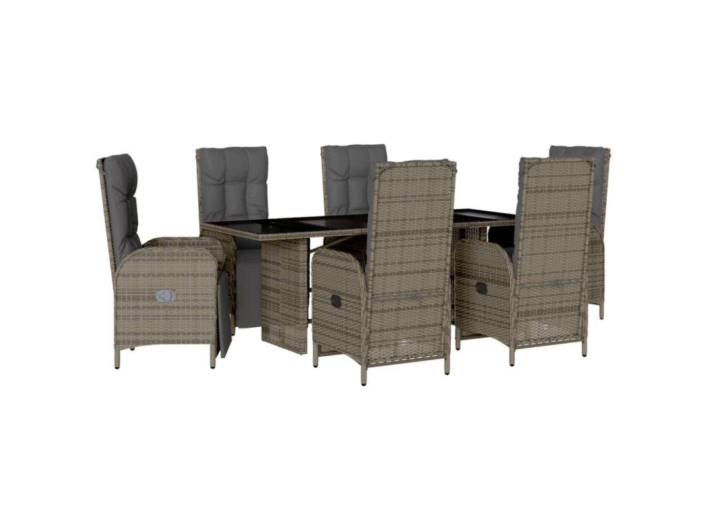 7dílný zahradní jídelní set s poduškami šedý polyratan 3213532