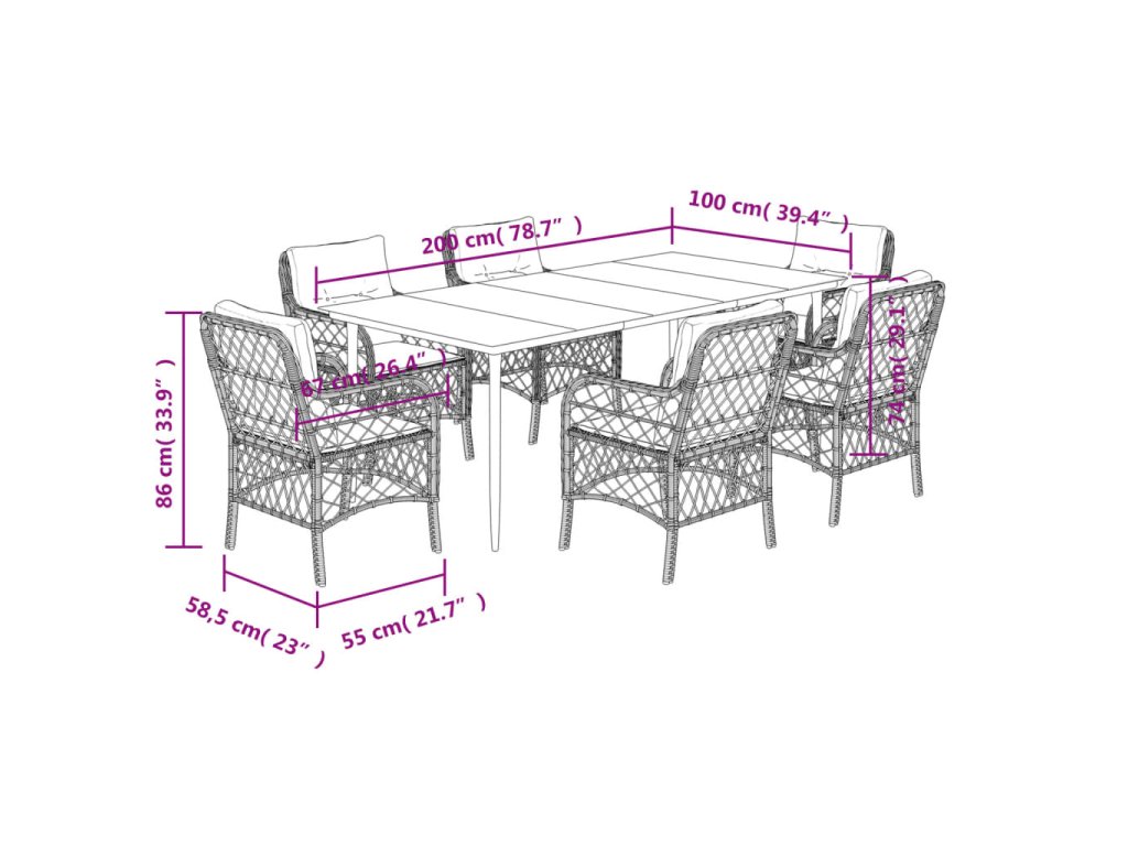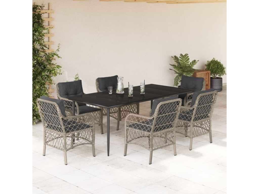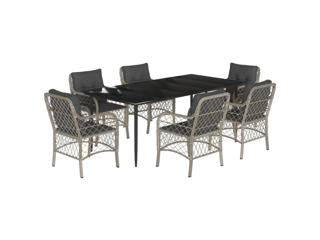 7dílný zahradní jídelní set s poduškami světle šedý polyratan 3212171