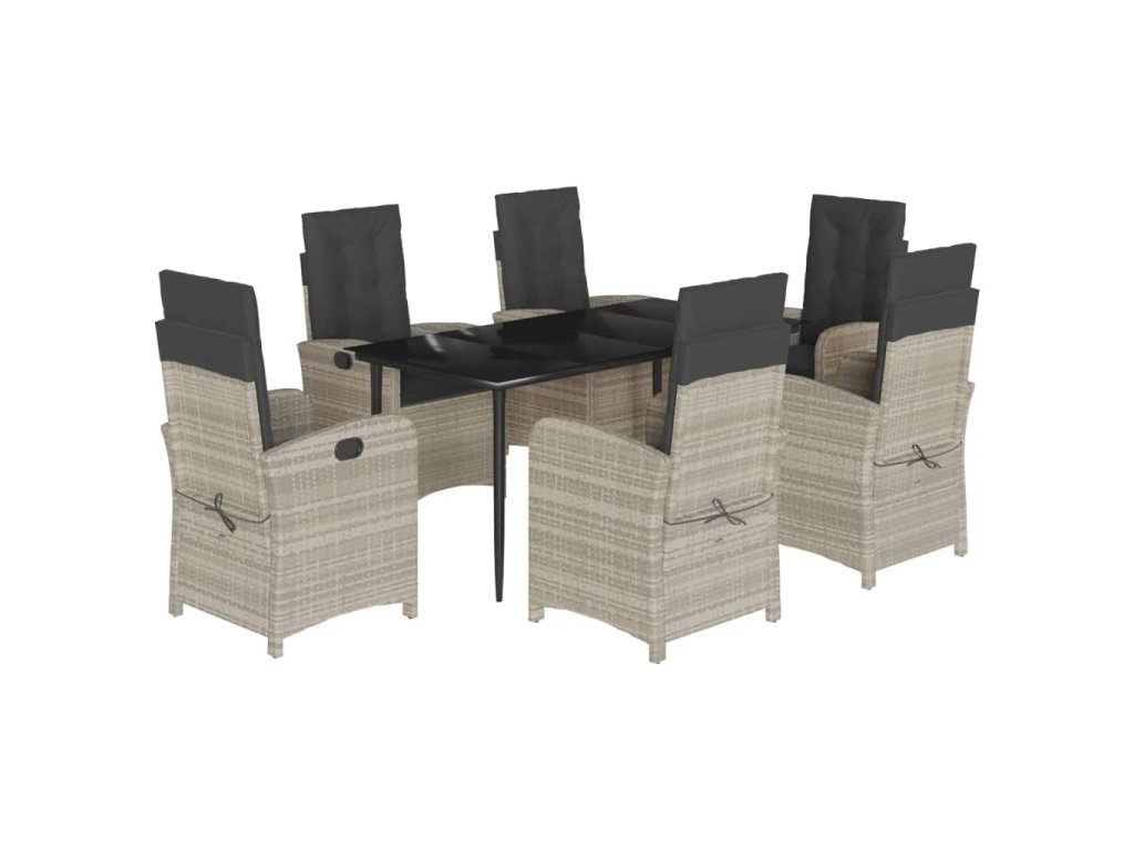 7dílný zahradní jídelní set s poduškami světle šedý polyratan 3212847