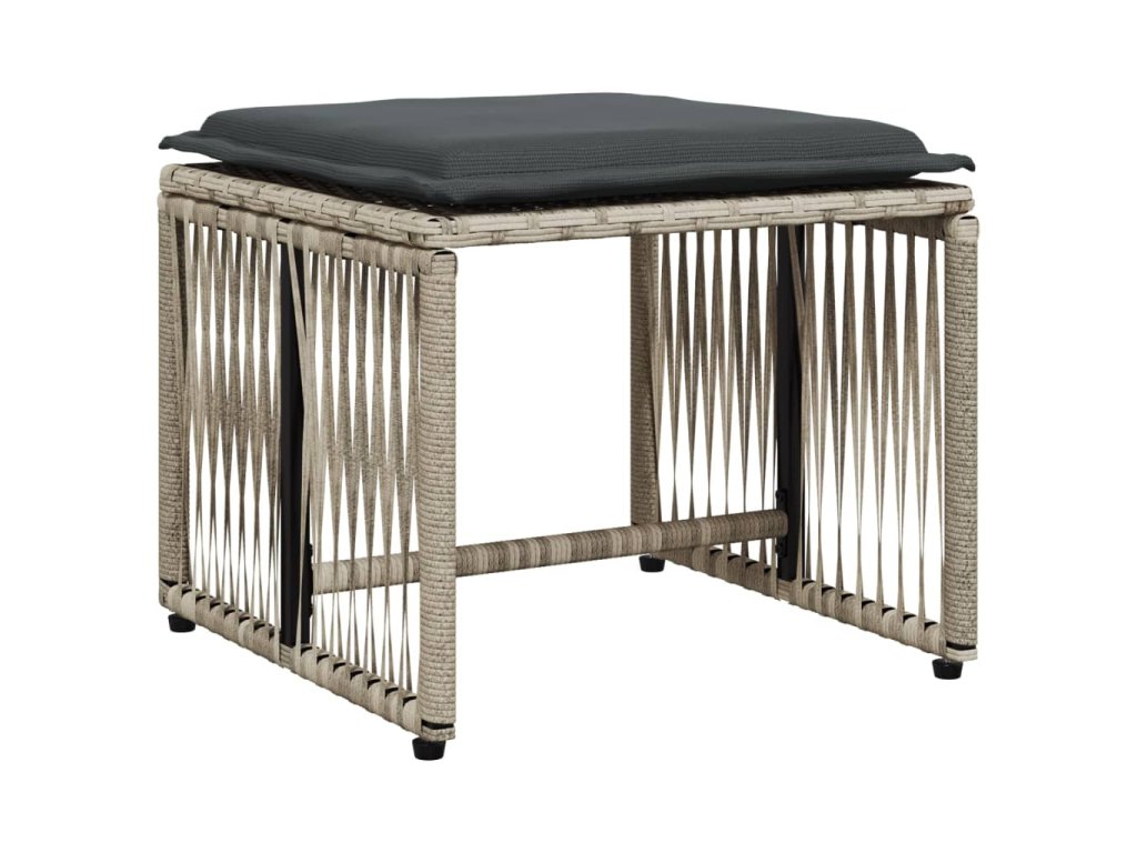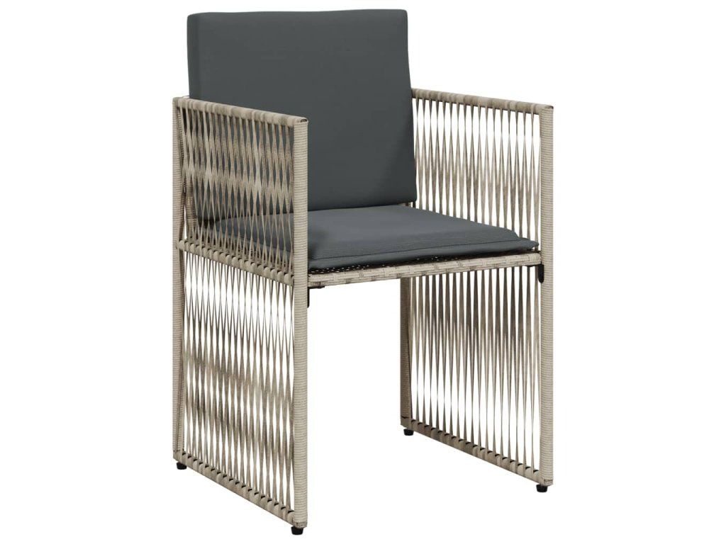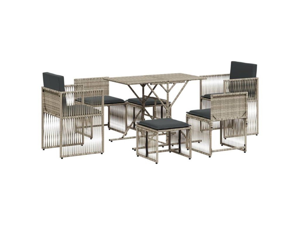 7dílný zahradní jídelní set s poduškami světle šedý polyratan 369014